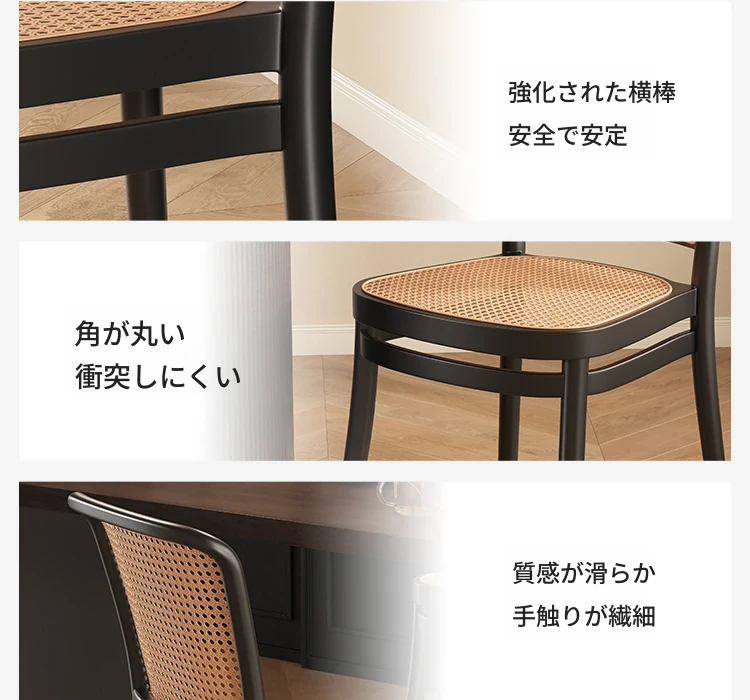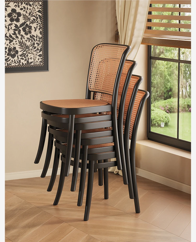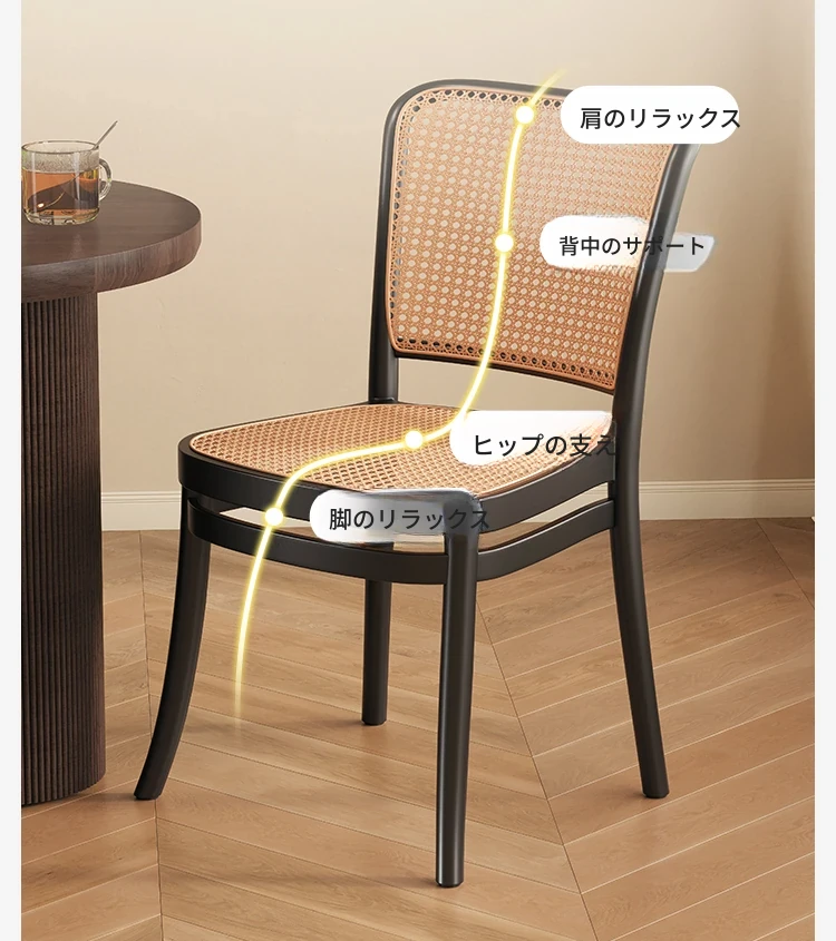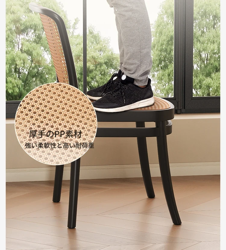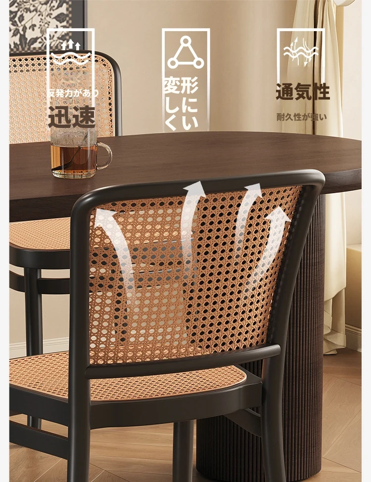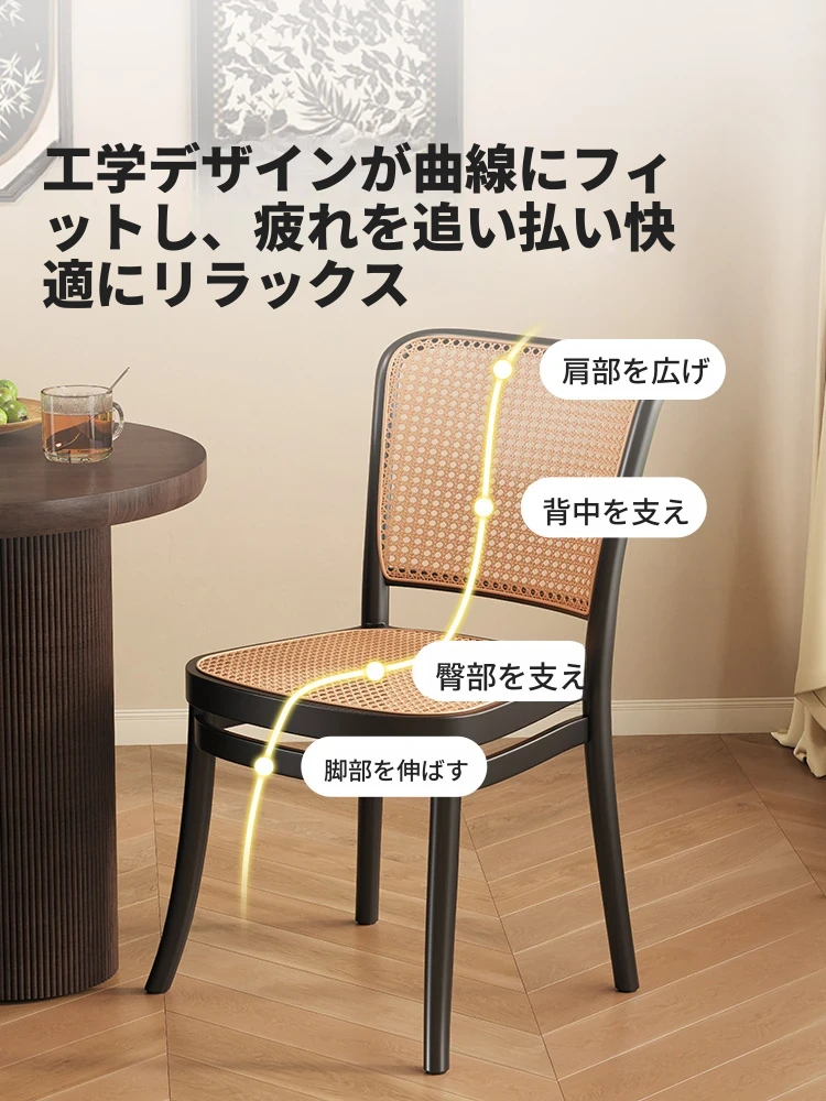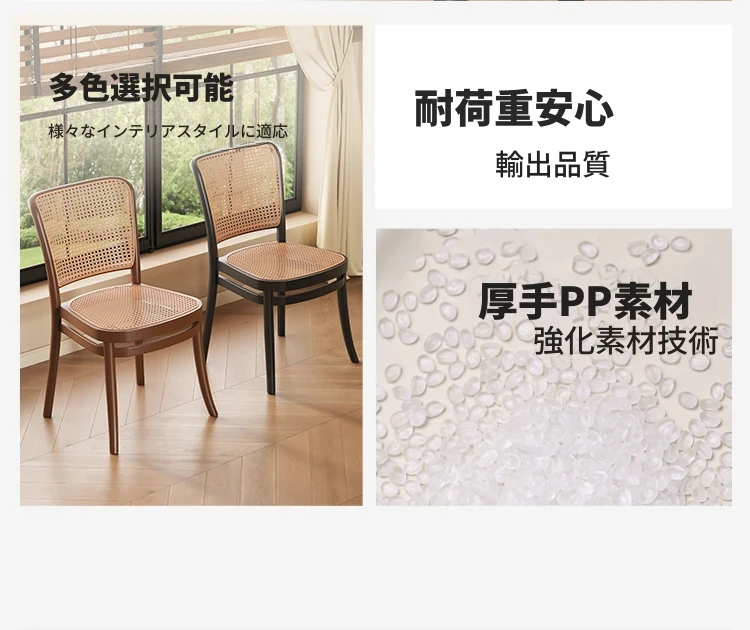 おしゃれな中古風ラタンチェア|家庭用・ダイニングに最適!スタッキング可能なプラスチック背もたれ付きで、軽やかな高級感を演出。ティーテーブルにもぴったりな一品です。