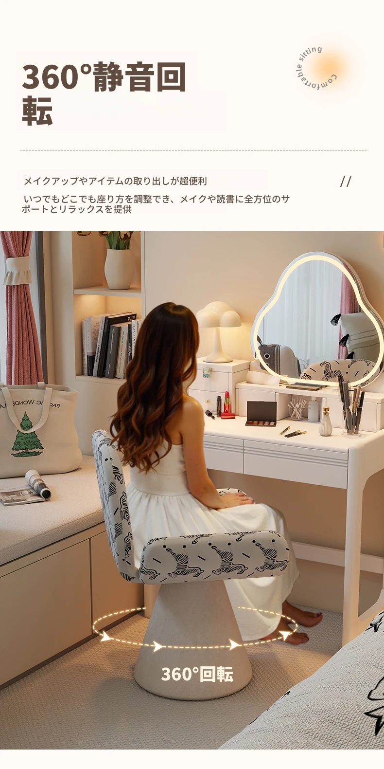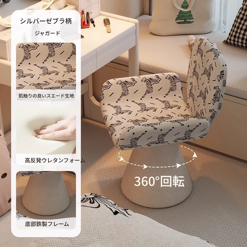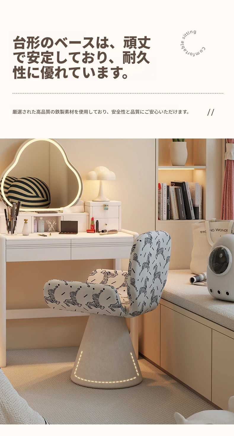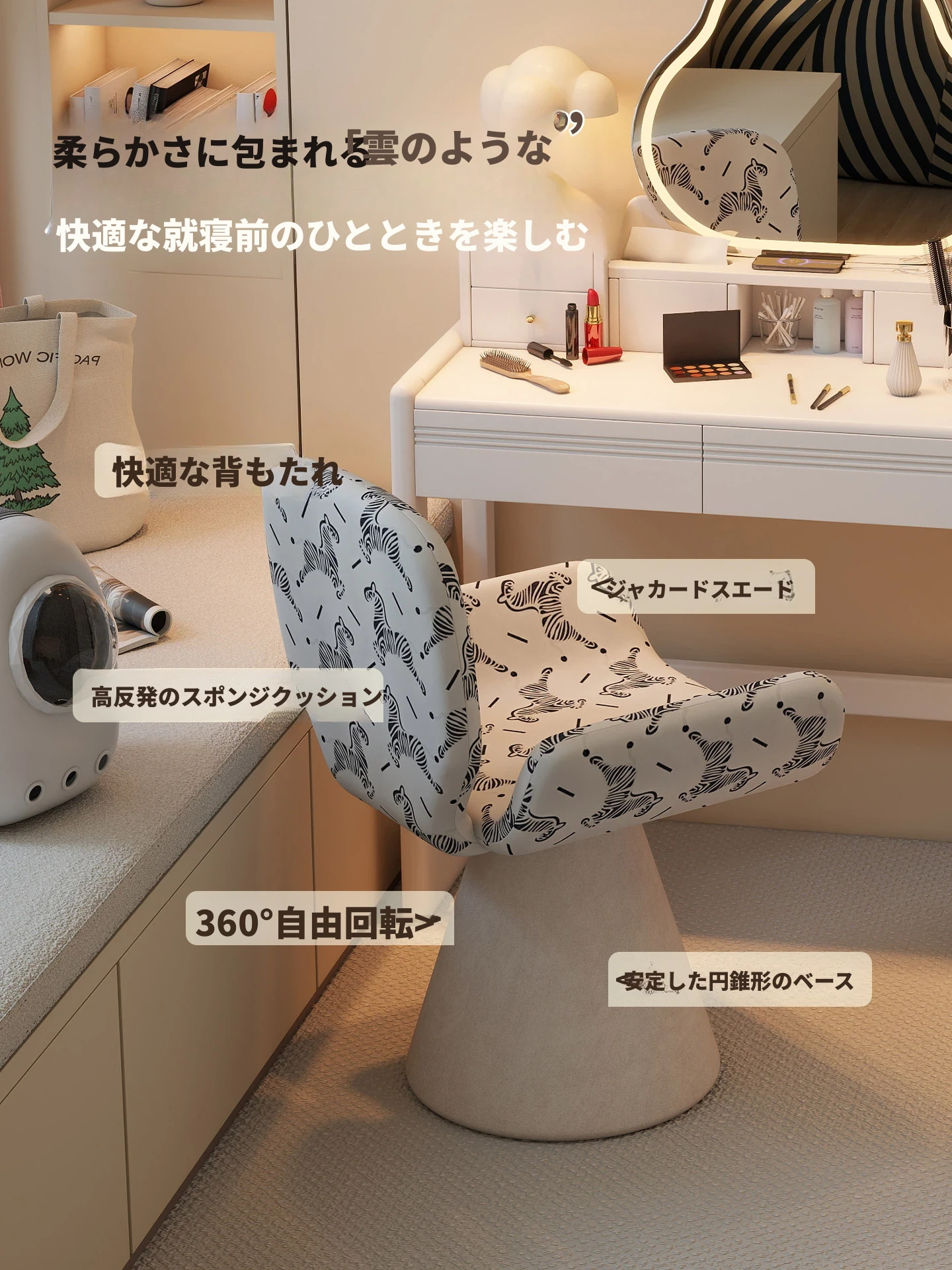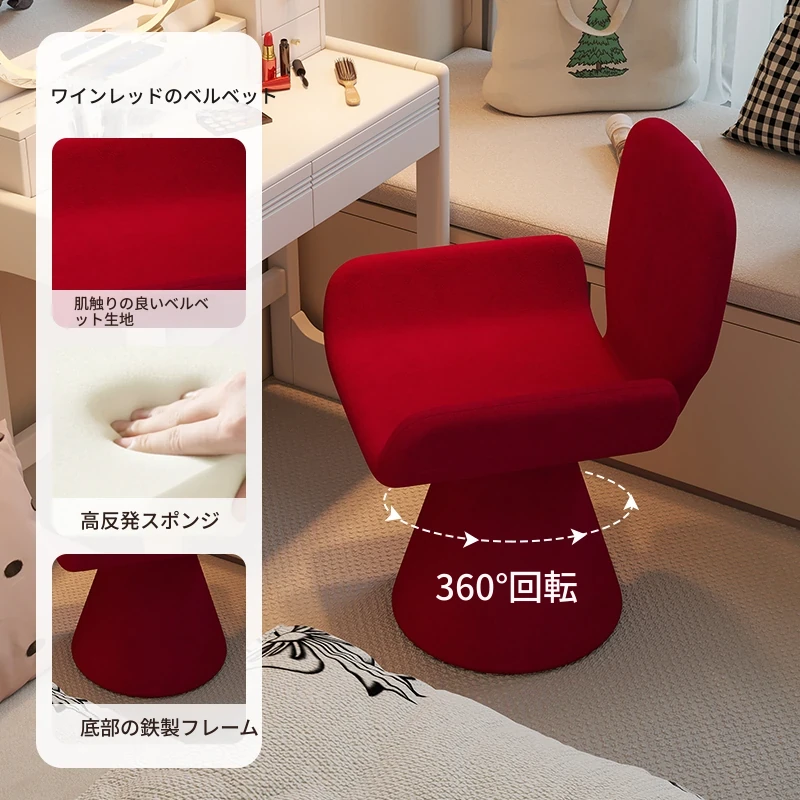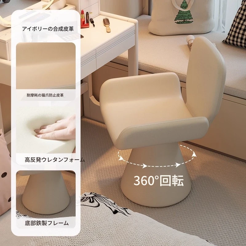 美しい寝室のための回転式化粧椅子 - 女子向けクリーミーな風合いの高級感あるネイル専用スツール。おしゃれなインテリアにぴったり!