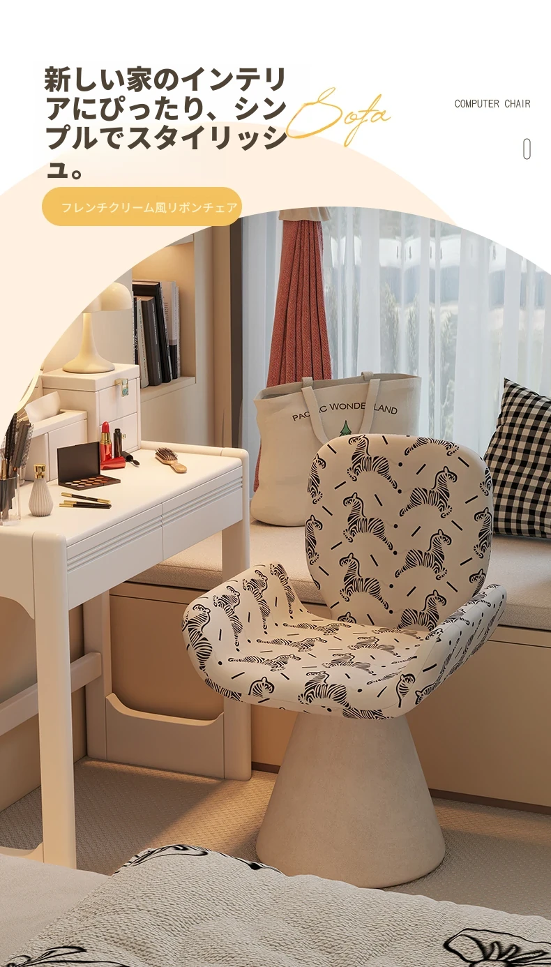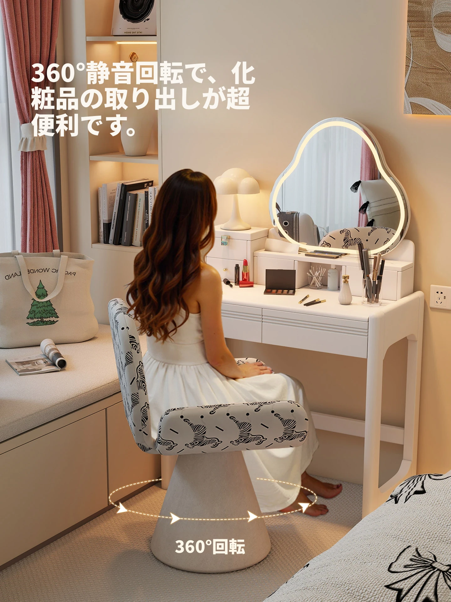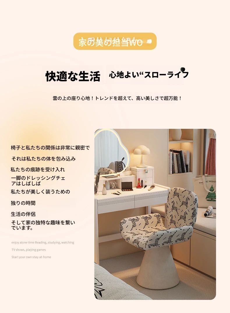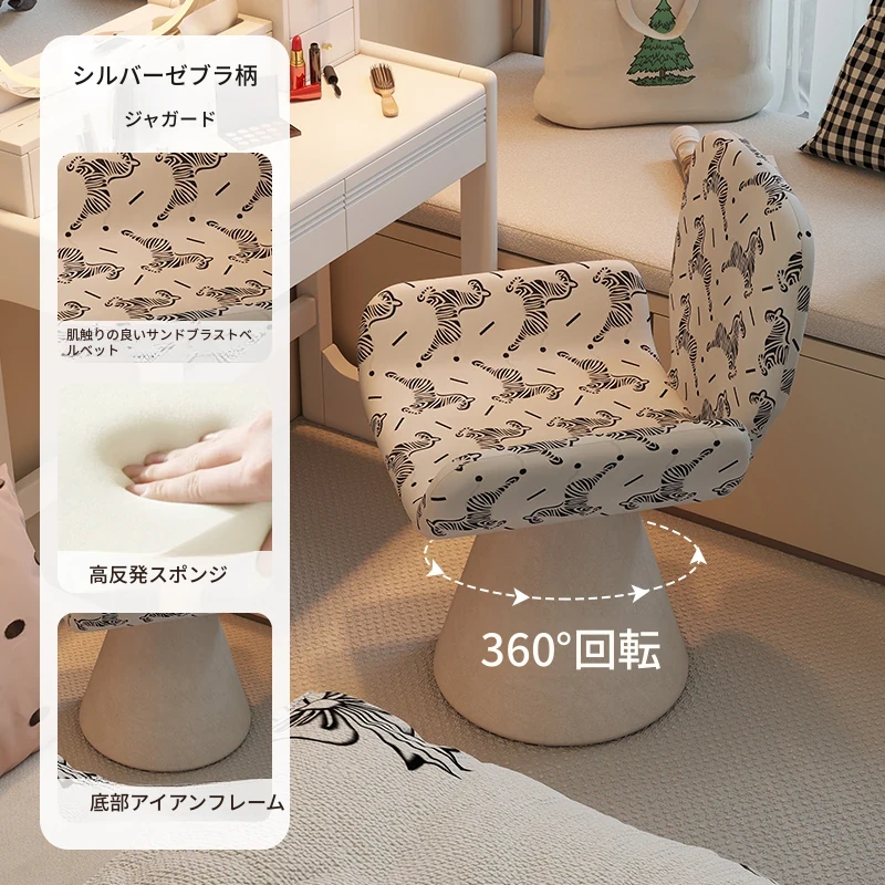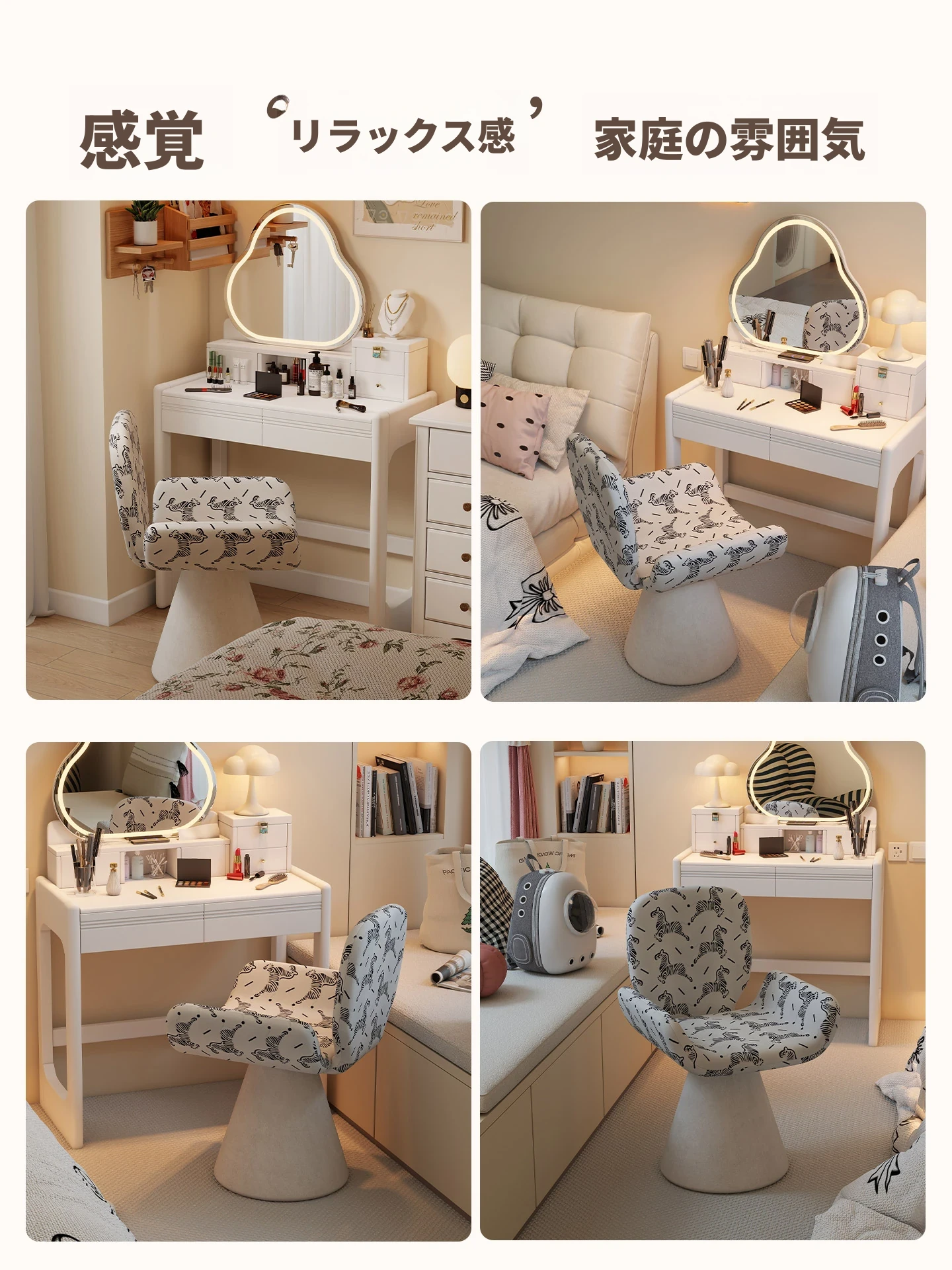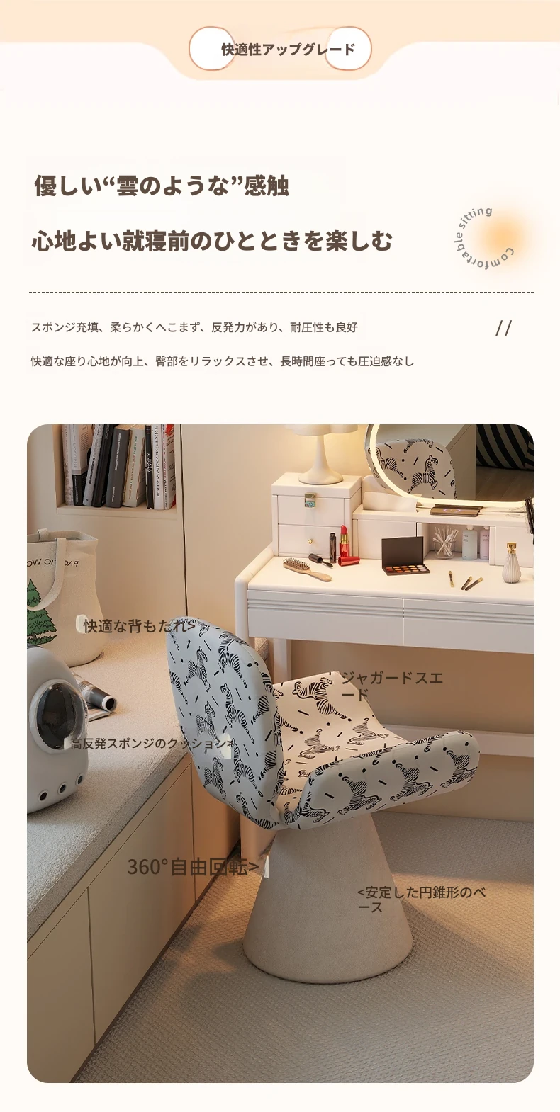 美しい寝室のための回転式化粧椅子 - 女子向けクリーミーな風合いの高級感あるネイル専用スツール。おしゃれなインテリアにぴったり!