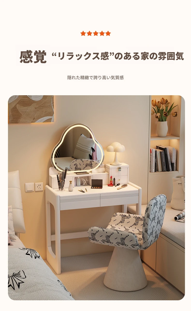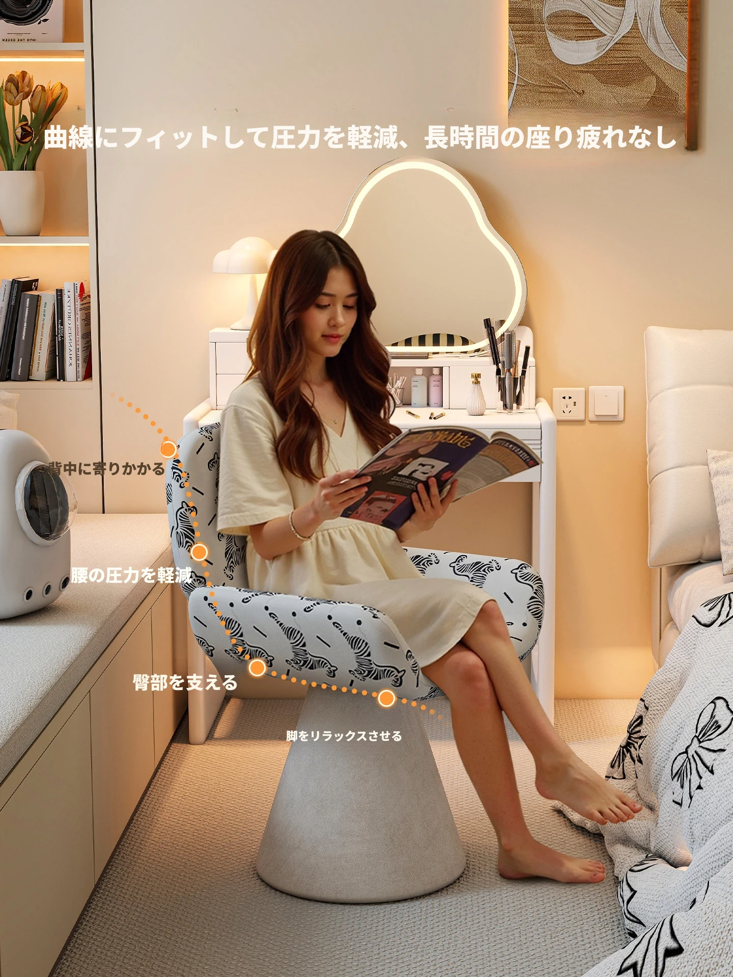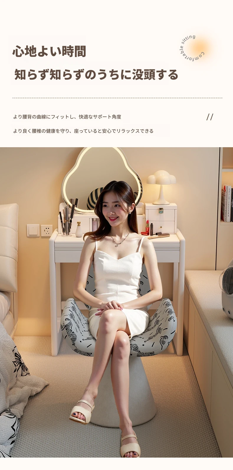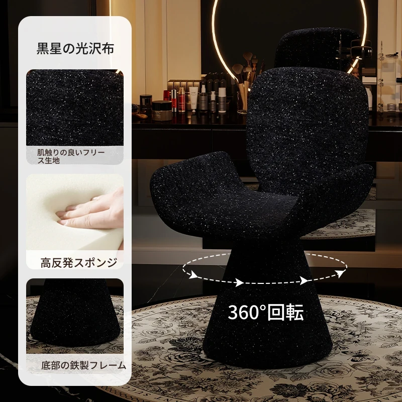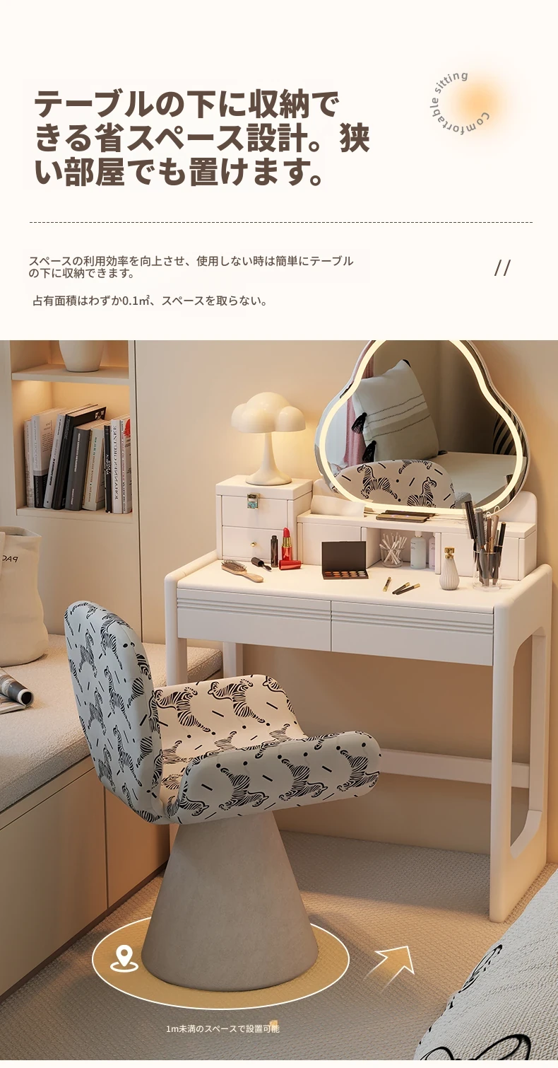 美しい寝室のための回転式化粧椅子 - 女子向けクリーミーな風合いの高級感あるネイル専用スツール。おしゃれなインテリアにぴったり!