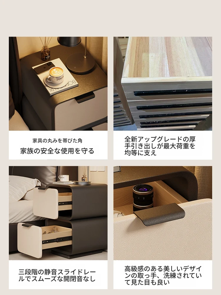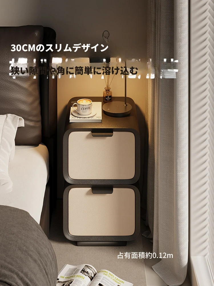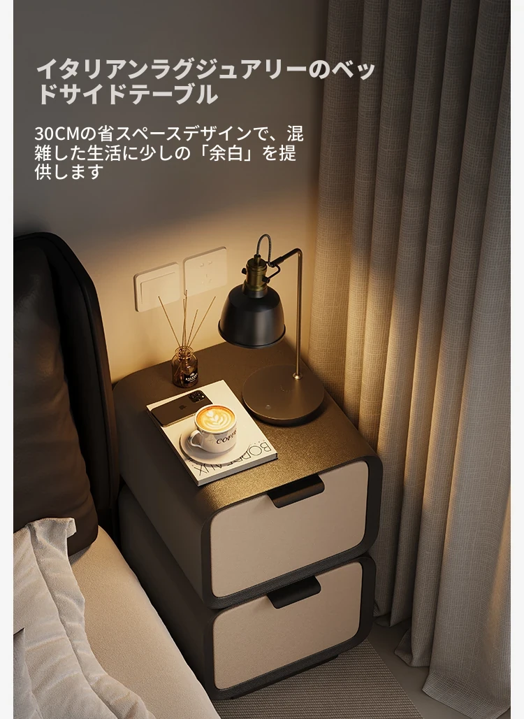 高級感溢れる木製小型ベッドサイドテーブル|おしゃれなデザインの収納キャビネット|狭いスペースにもピッタリなクリエイティブな一品!寝室をスタイリッシュに演出します。