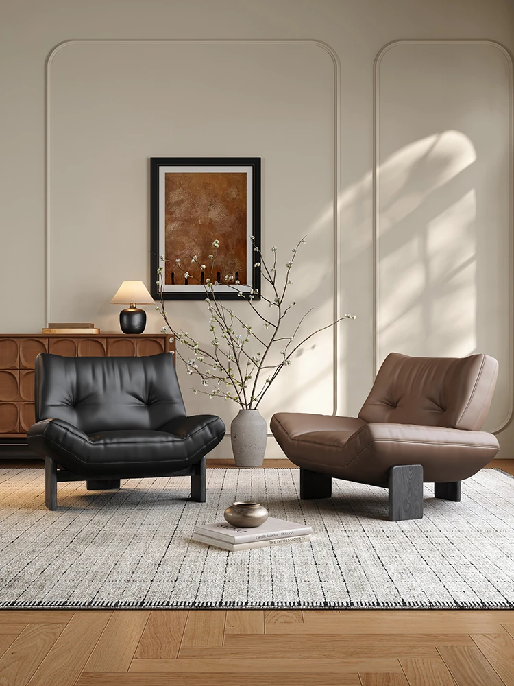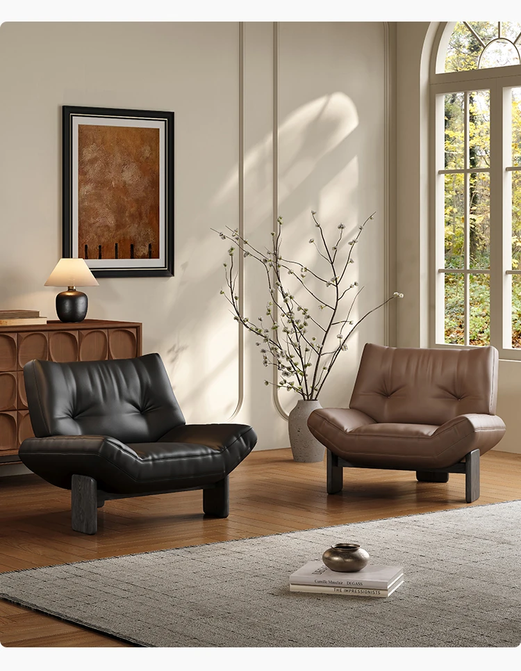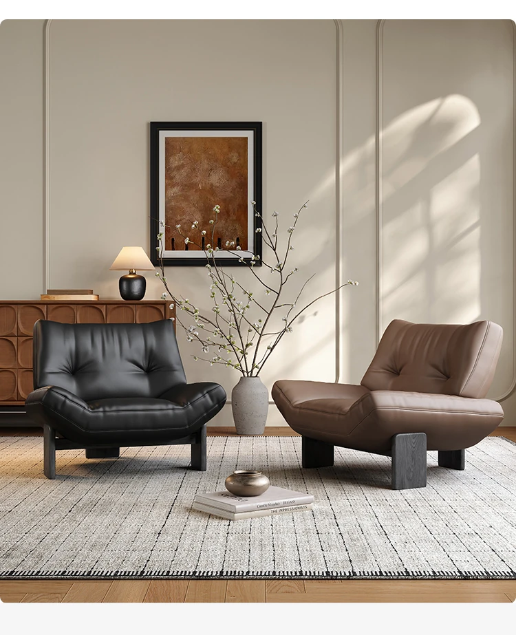 【ブラック牛革】カジュアルチェア - (デフォルトはスポンジタイプです)