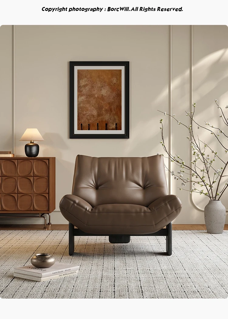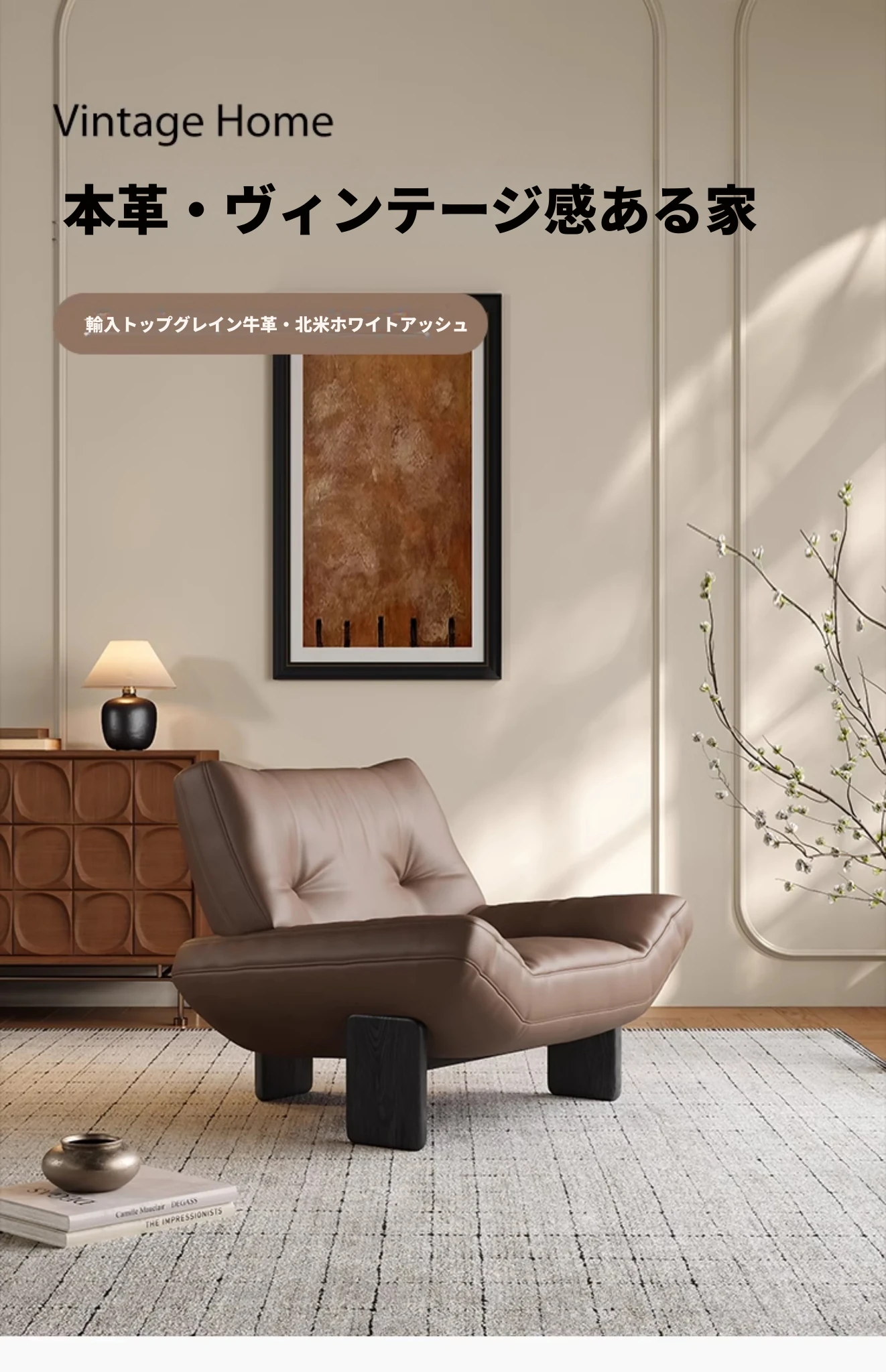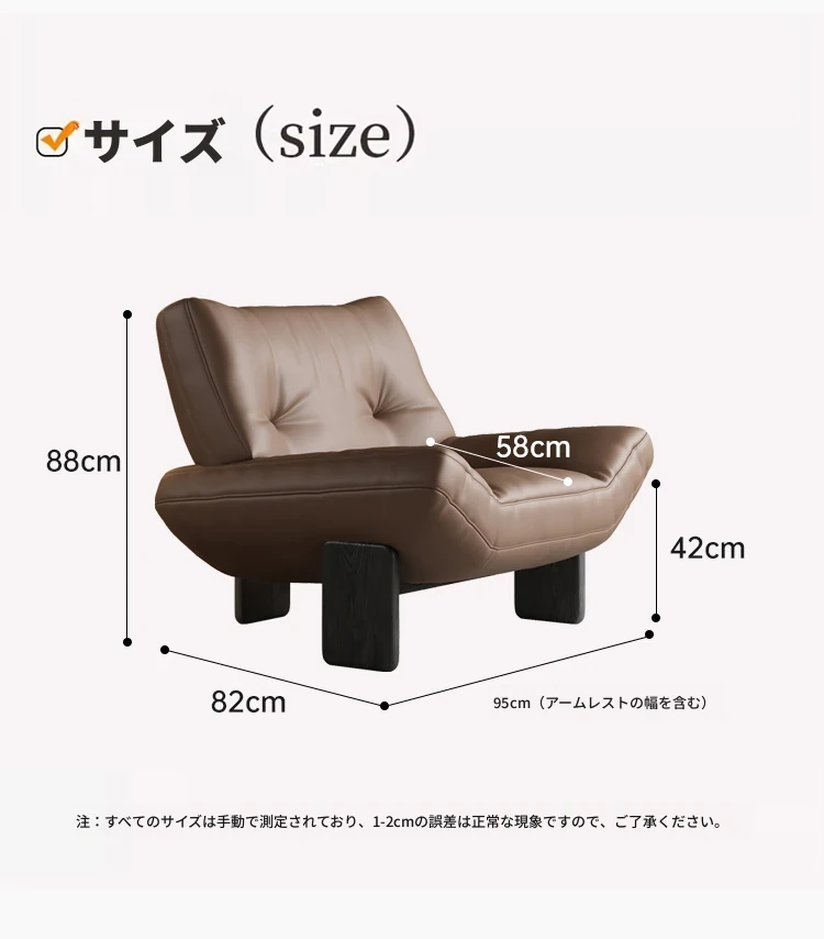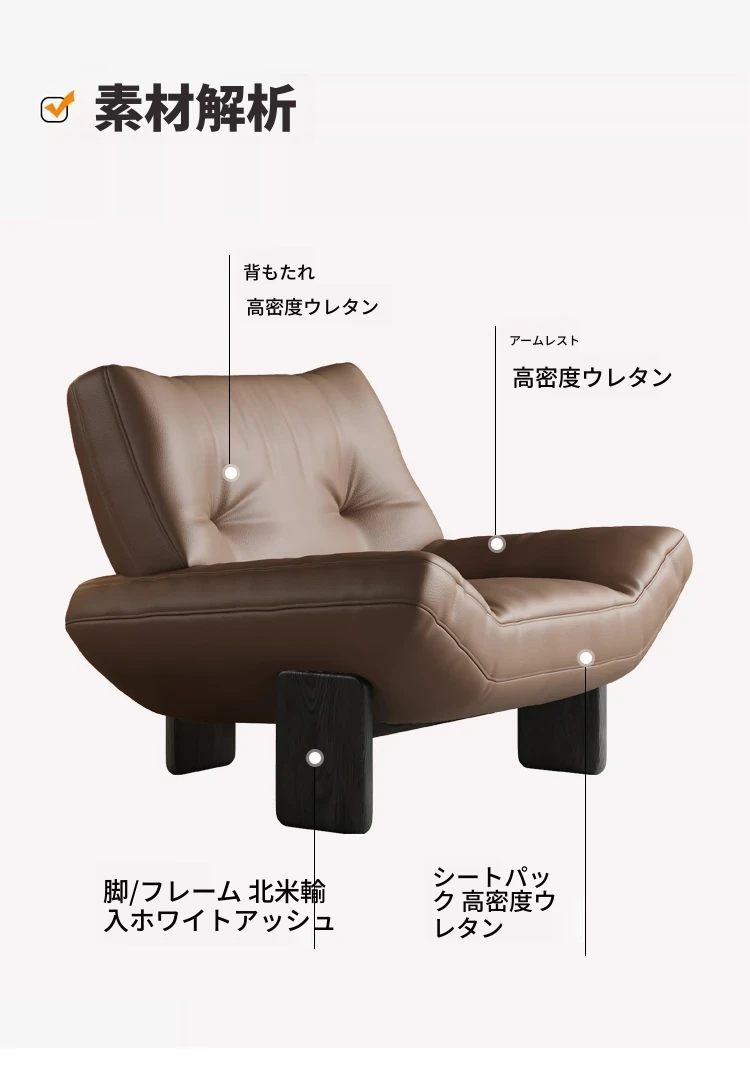 【ブラウン牛革】カジュアルチェア - (デフォルトはスポンジタイプです)