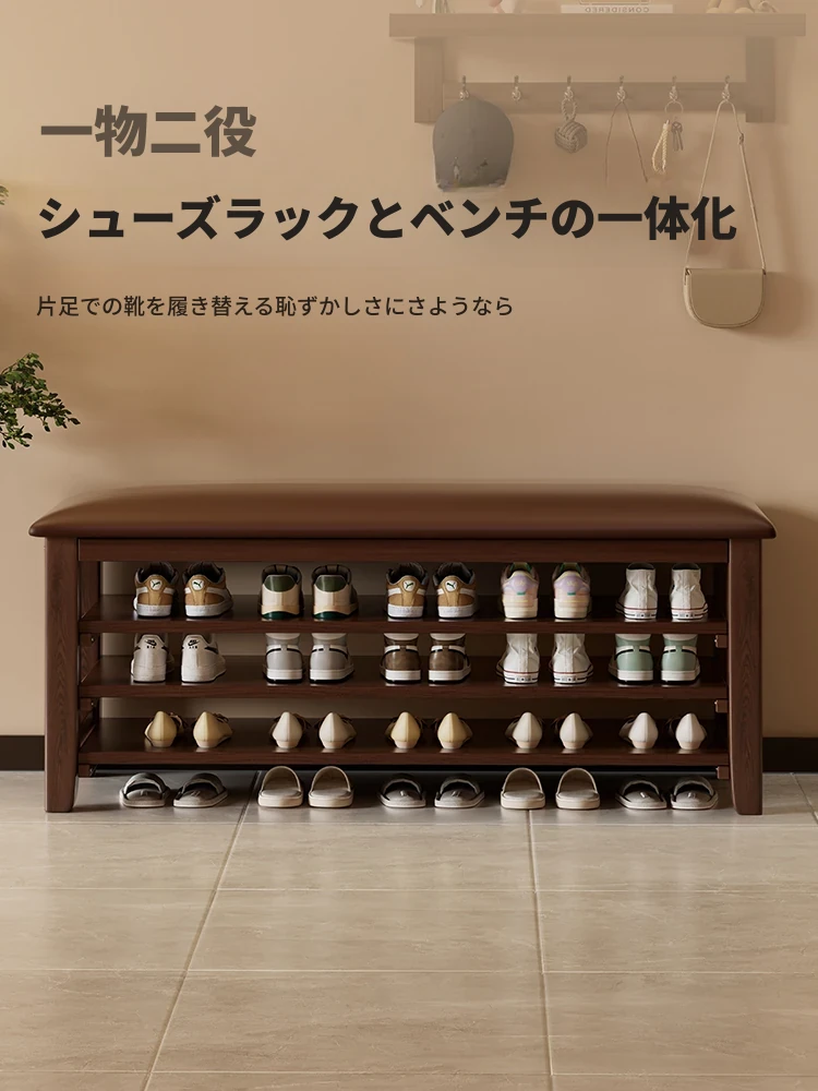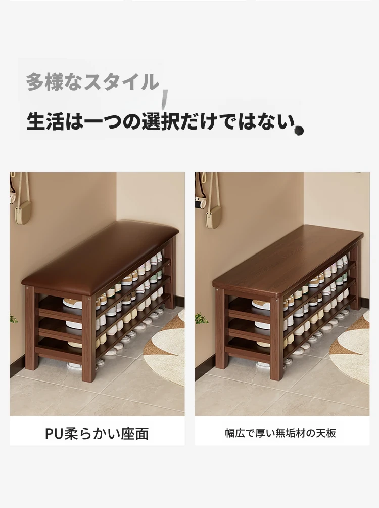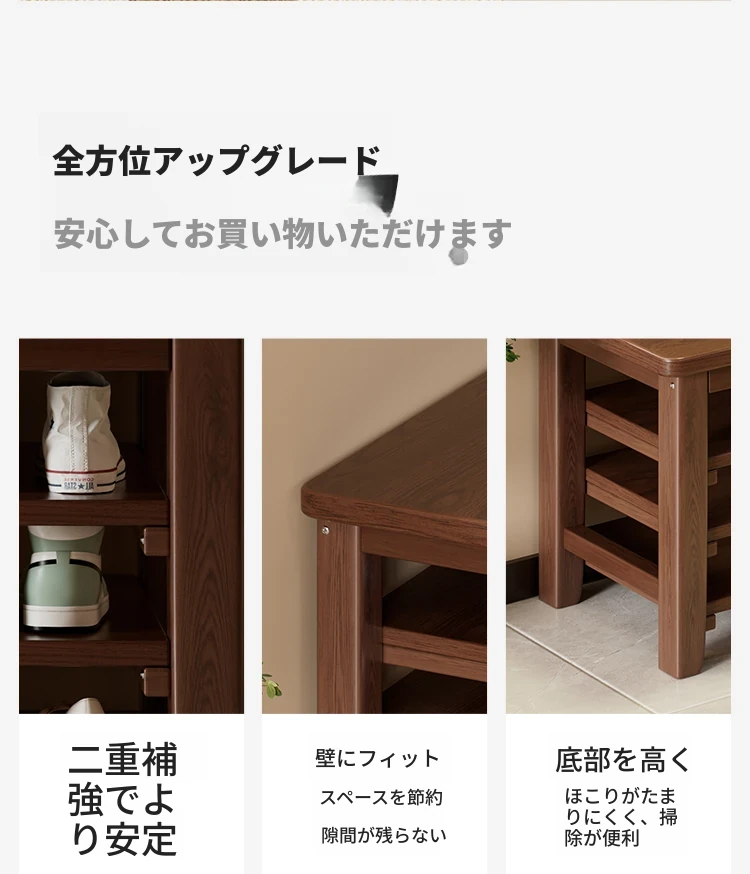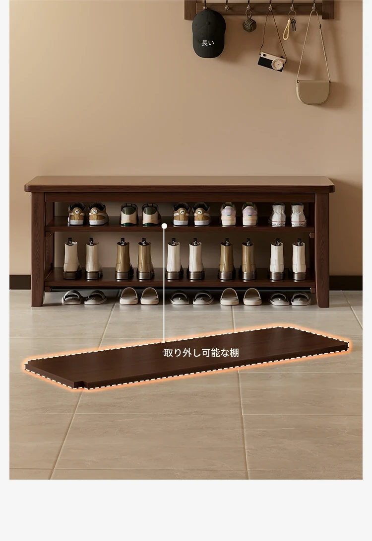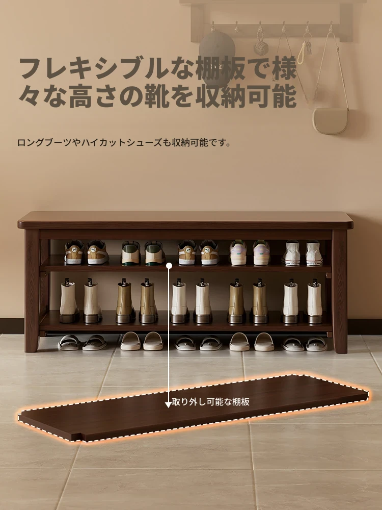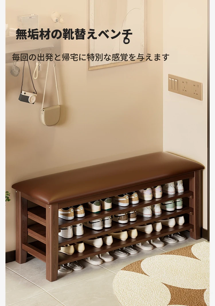 玄関用靴ベンチ|シューズキャビネット一体型|快適なクッション付きの無垢材長椅子|おしゃれで機能的な靴を履くための必需品!