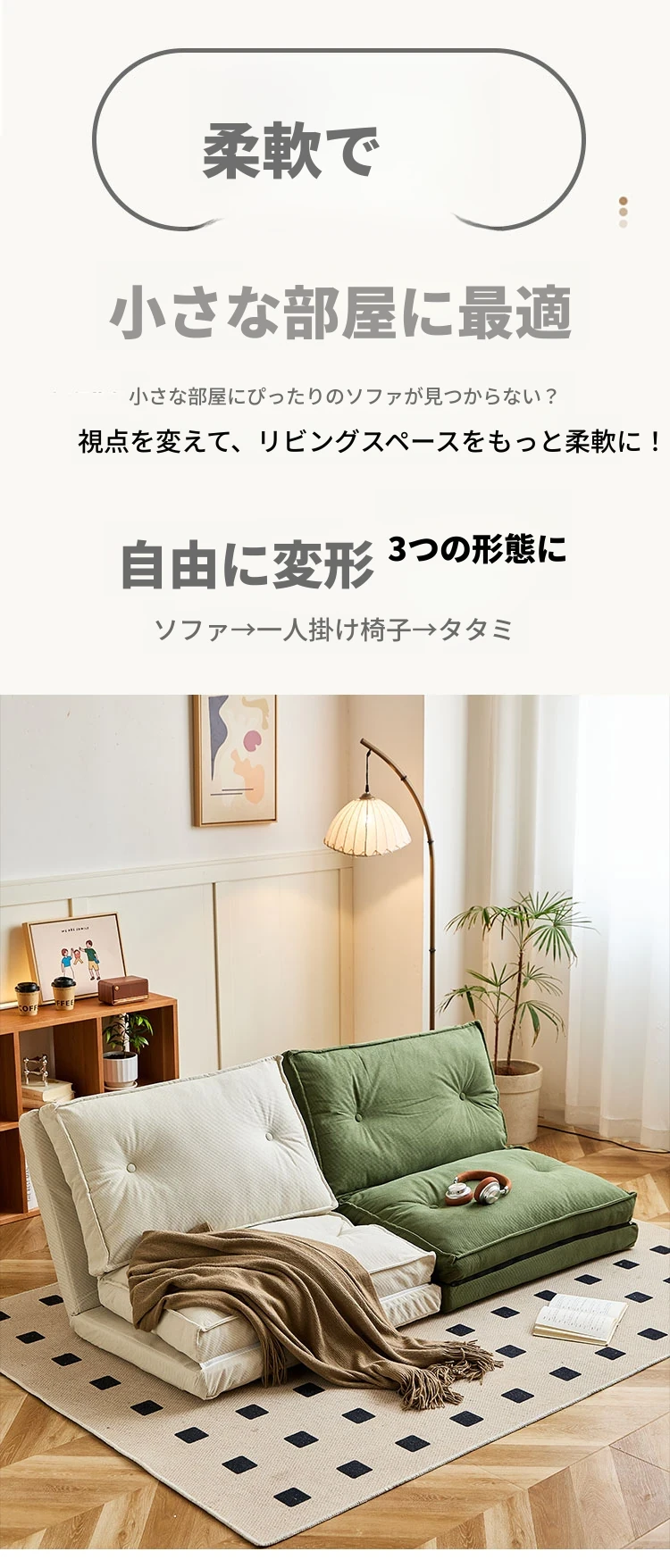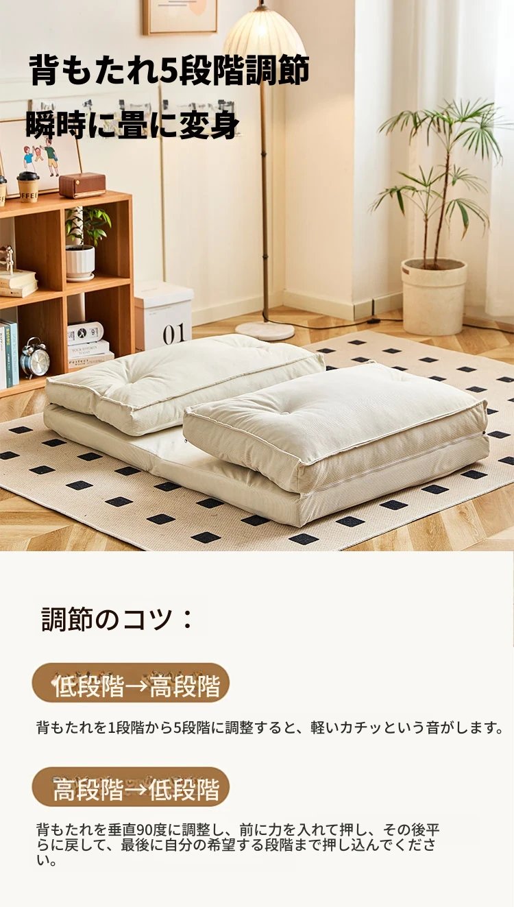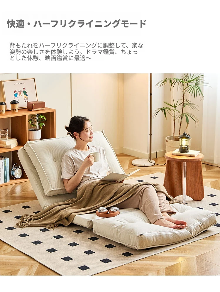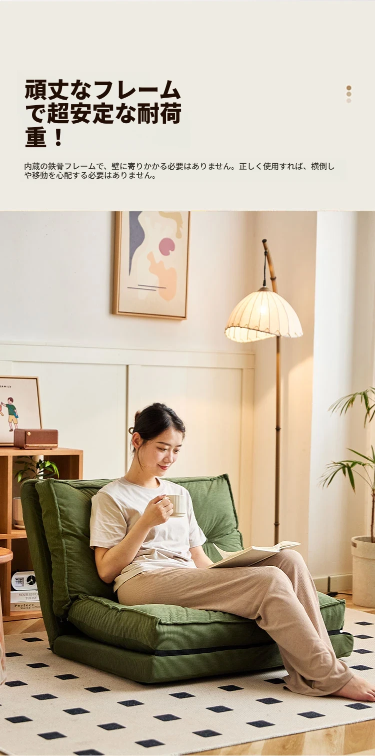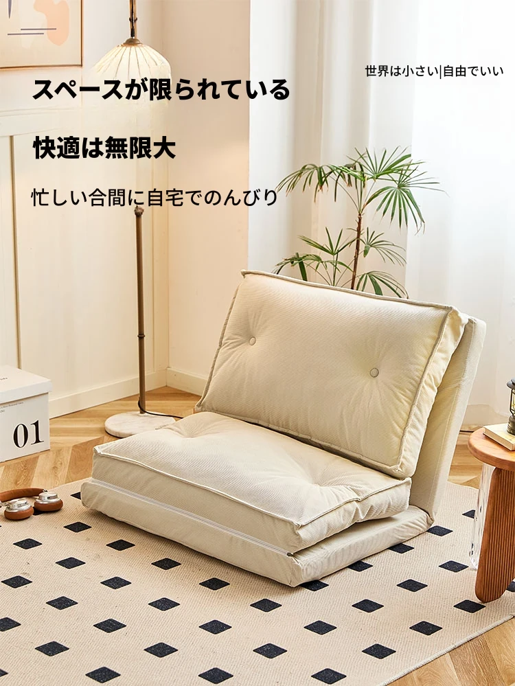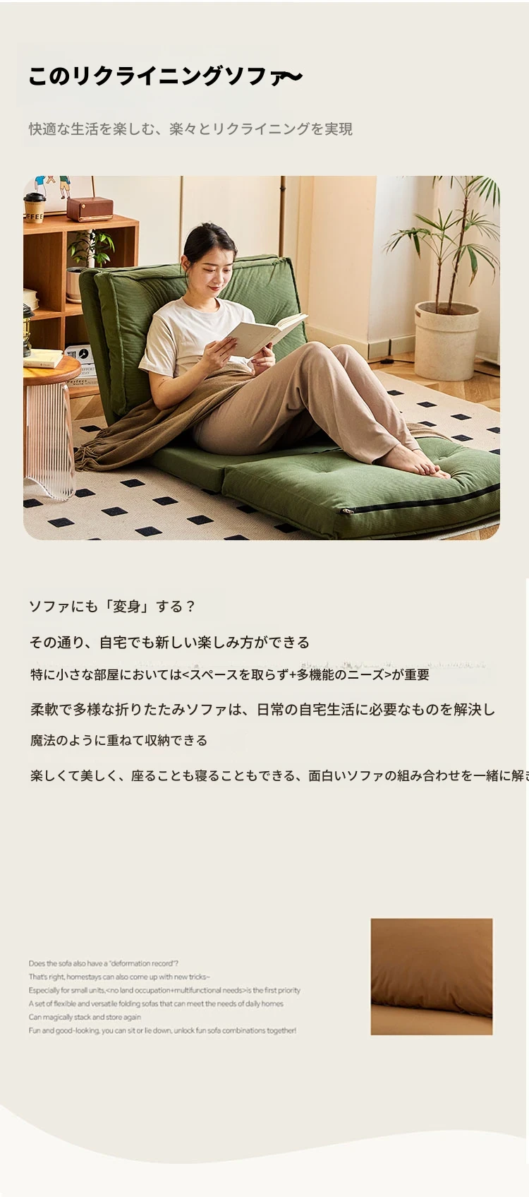 折りたたみ式リラックスソファ!畳スタイルの二重機能、快適な一人用リクライニングチェア。バルコニーや寝室にぴったりな、くつろぎの小型ソファです。おしゃれで実用的、あなたのリラックスタイムを充実させます!