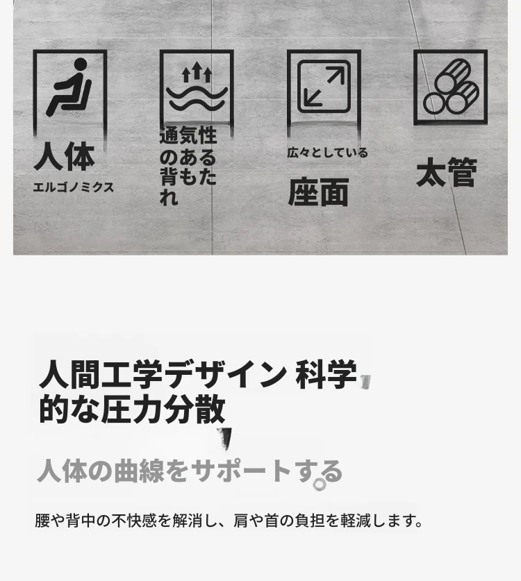 ⭐【アップグレード通気性モデル】シンプルグレー【太くて厚いスチールパイプ 3D通気メッシュ】