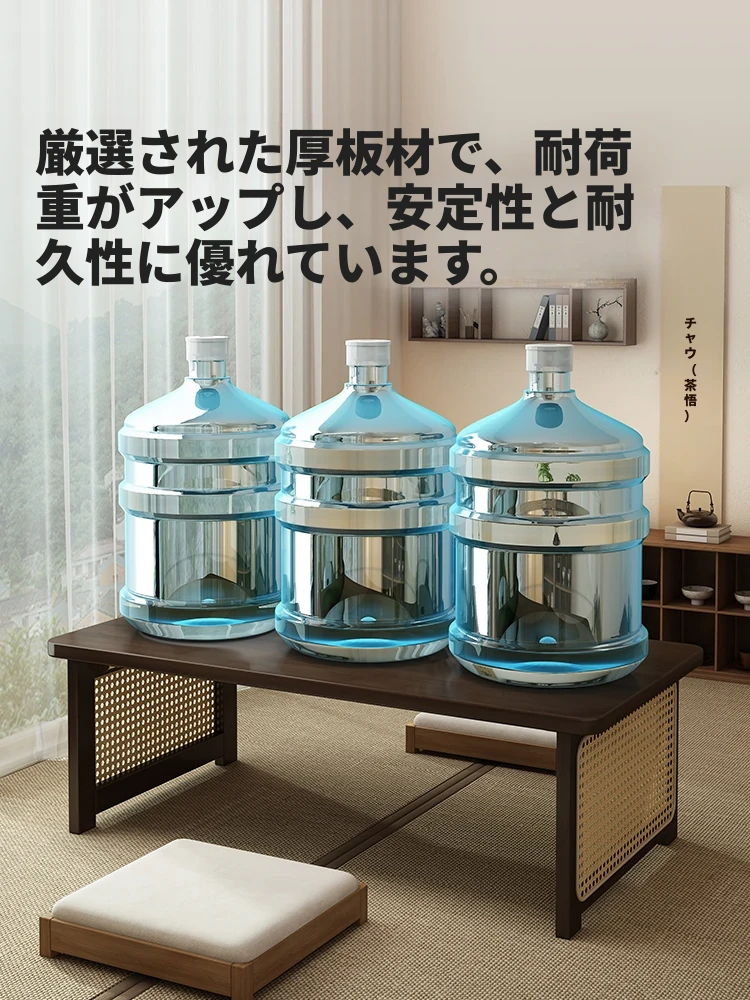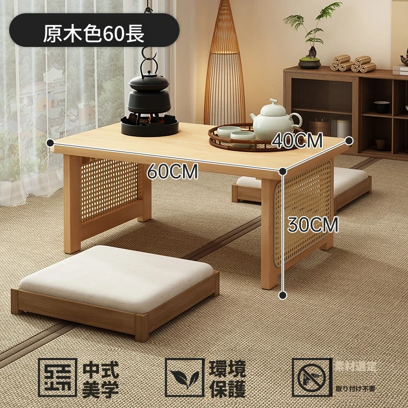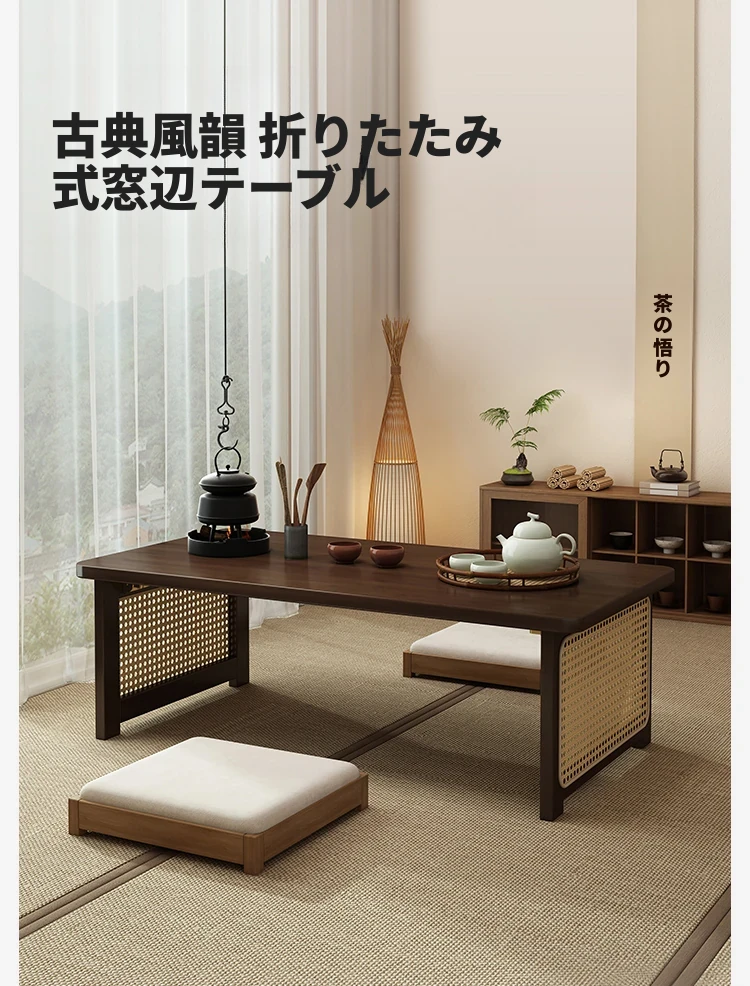 折りたたみ式の窓辺テーブル - おしゃれな藤編みデザインのリビング用コーヒーテーブル!コンパクトな小型サイズで、和室や畳の部屋にもぴったり。居心地の良い空間を演出する、スタイリッシュな低テーブルです。