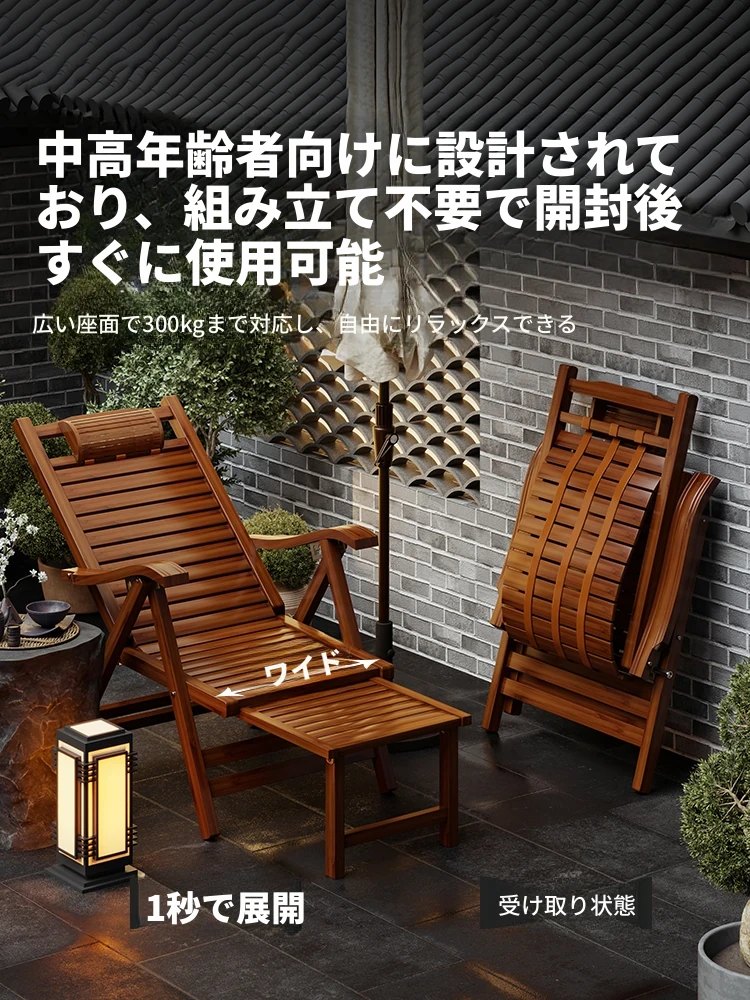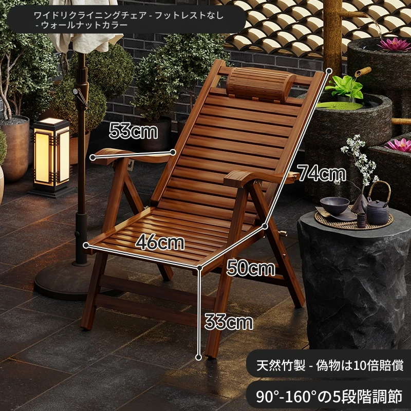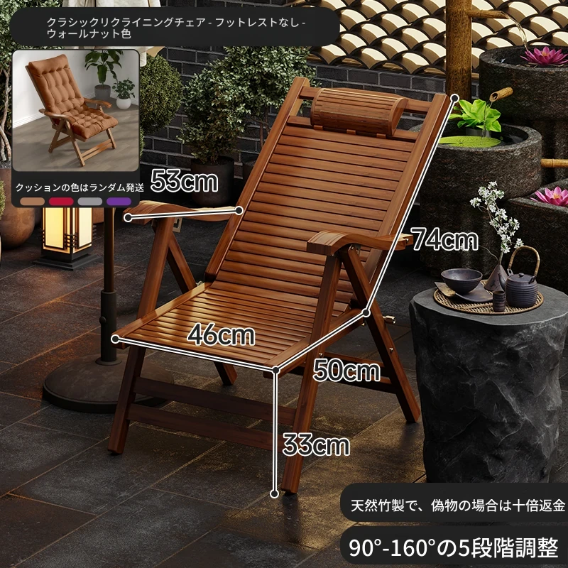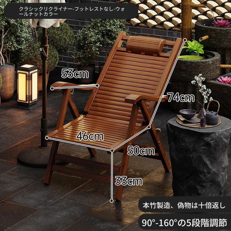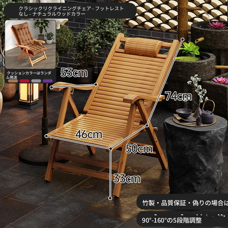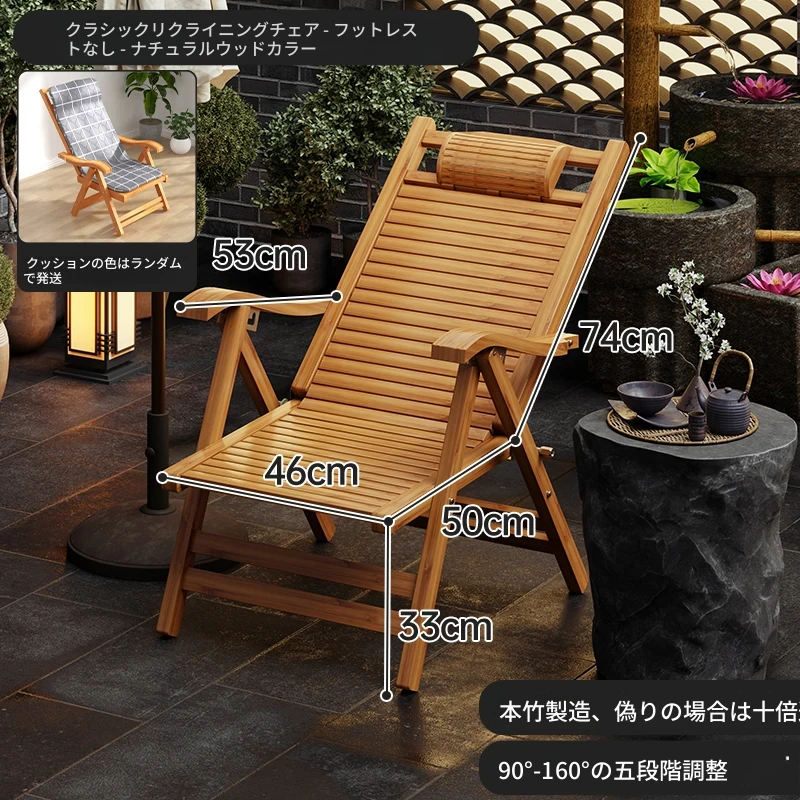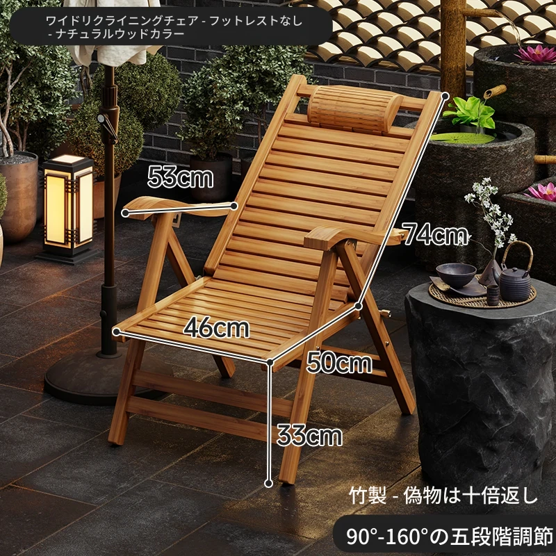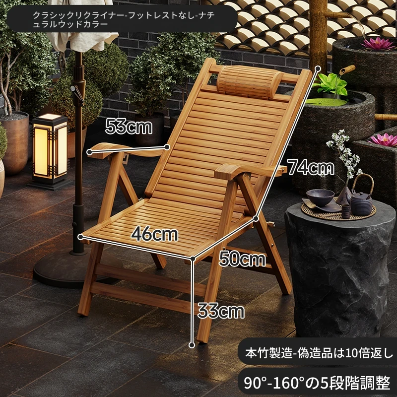 折りたたみ式リクライニングチェア - お昼寝やリラックスに最適!バルコニーや家庭で使える、寝ることもできる高齢者専用の快適な竹製チェア。ゆったりとした時間をお楽しみください!