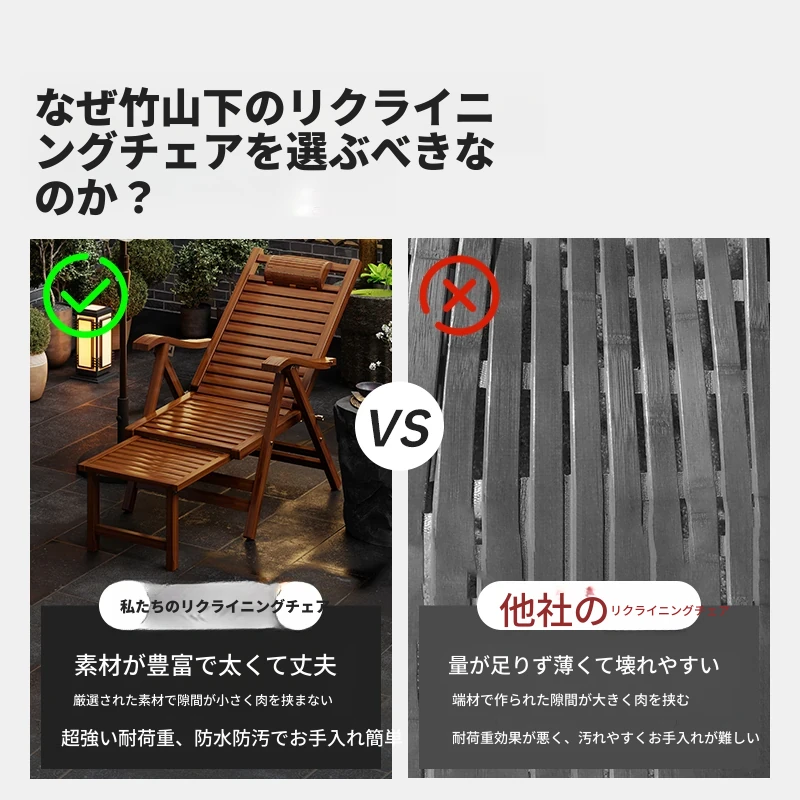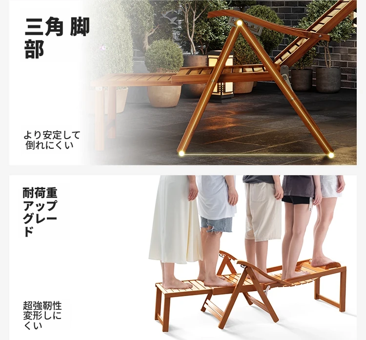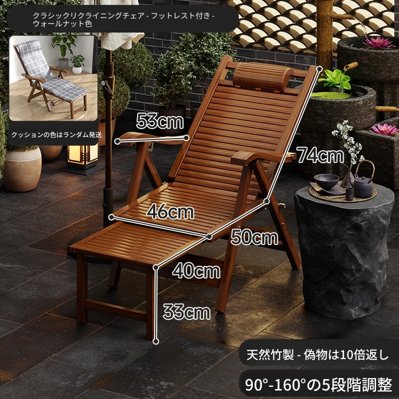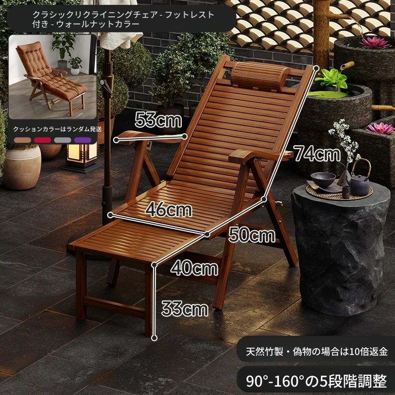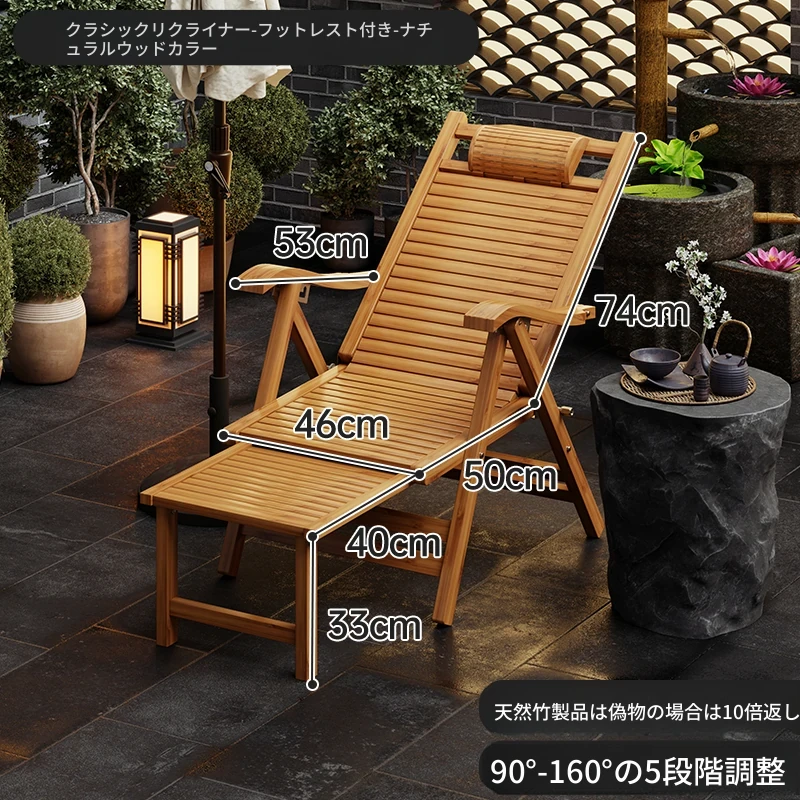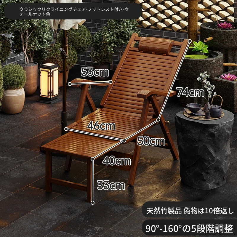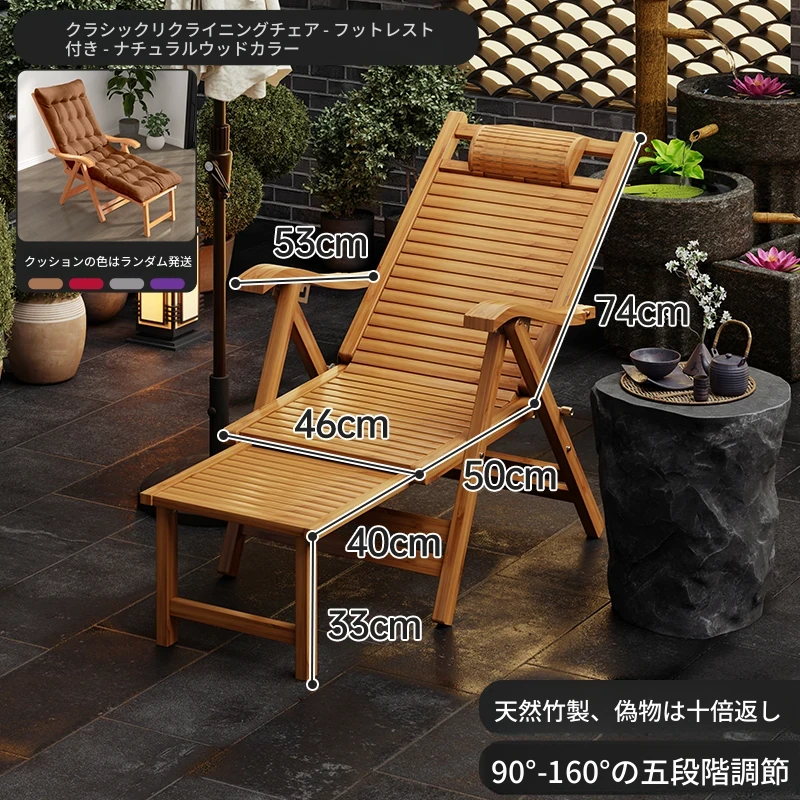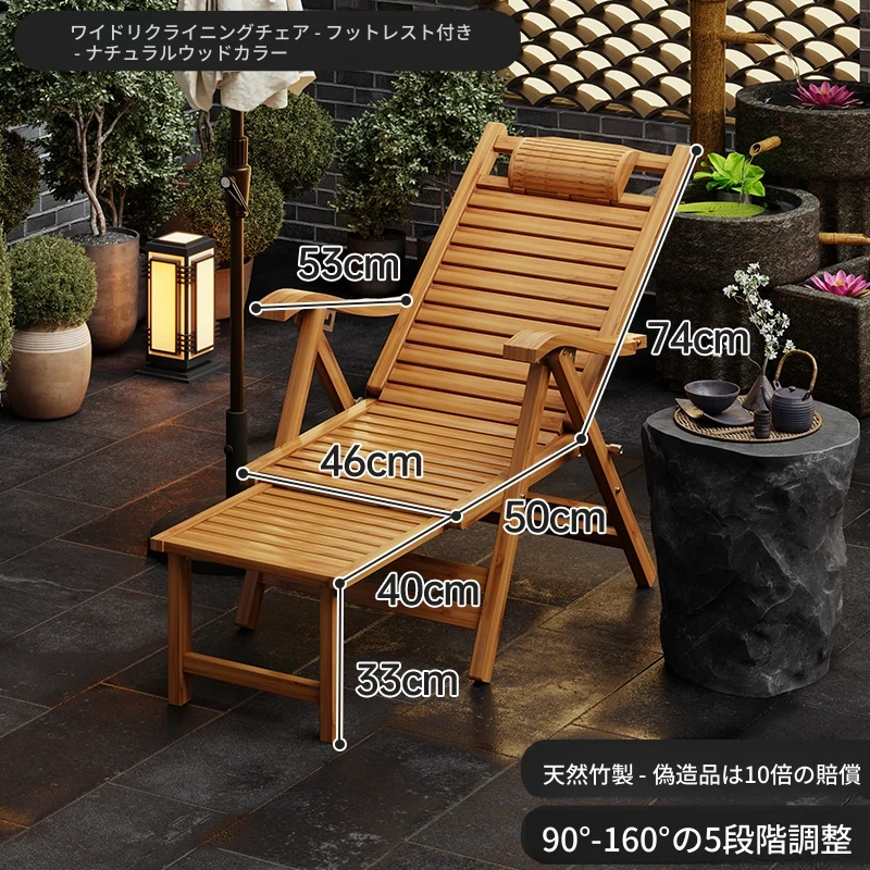 折りたたみ式リクライニングチェア - お昼寝やリラックスに最適!バルコニーや家庭で使える、寝ることもできる高齢者専用の快適な竹製チェア。ゆったりとした時間をお楽しみください!