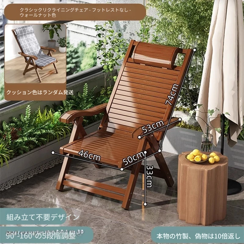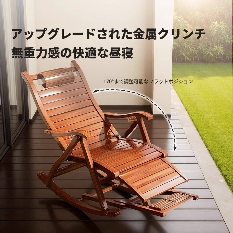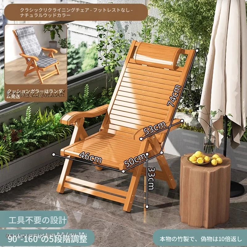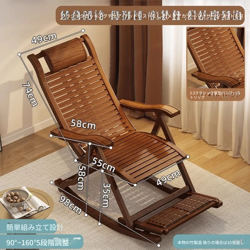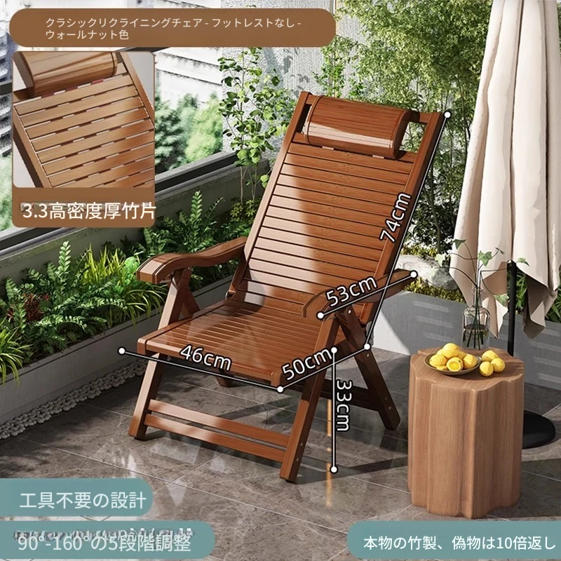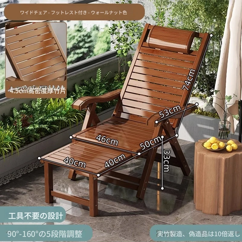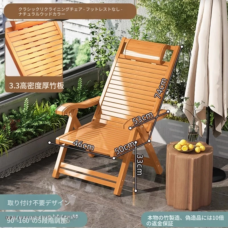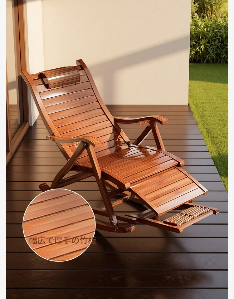 折りたたみ式のリクライニングチェア - 懒人のための快適な昼寝、老人に最適な竹製リラックスチェア。自宅のバルコニーでくつろぎ、心地よいひとときをお楽しみください!