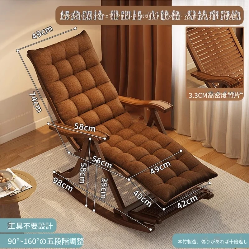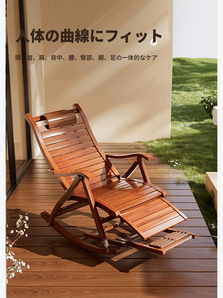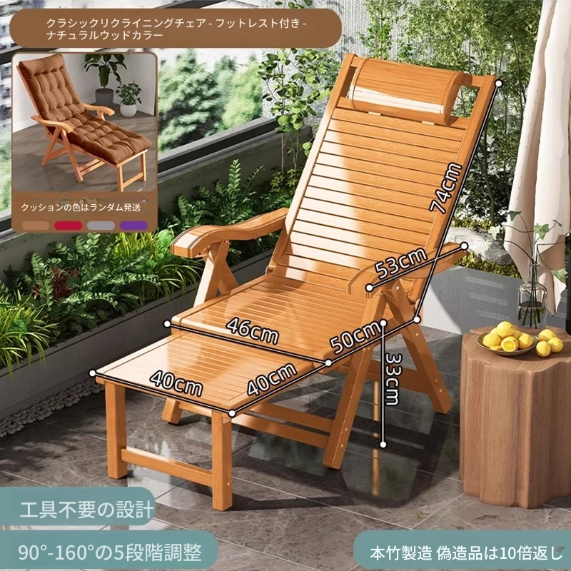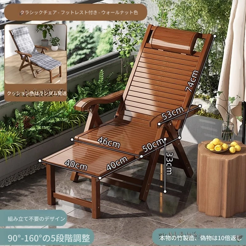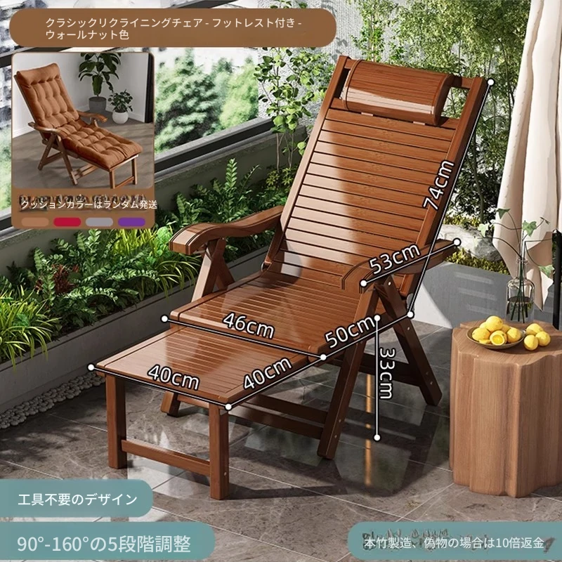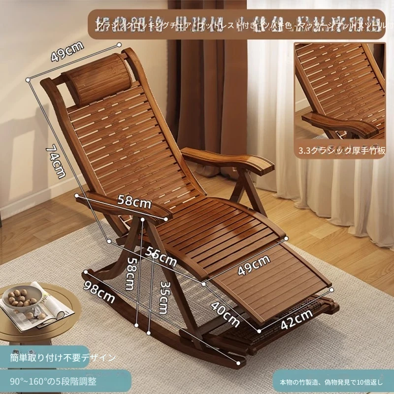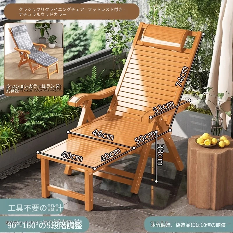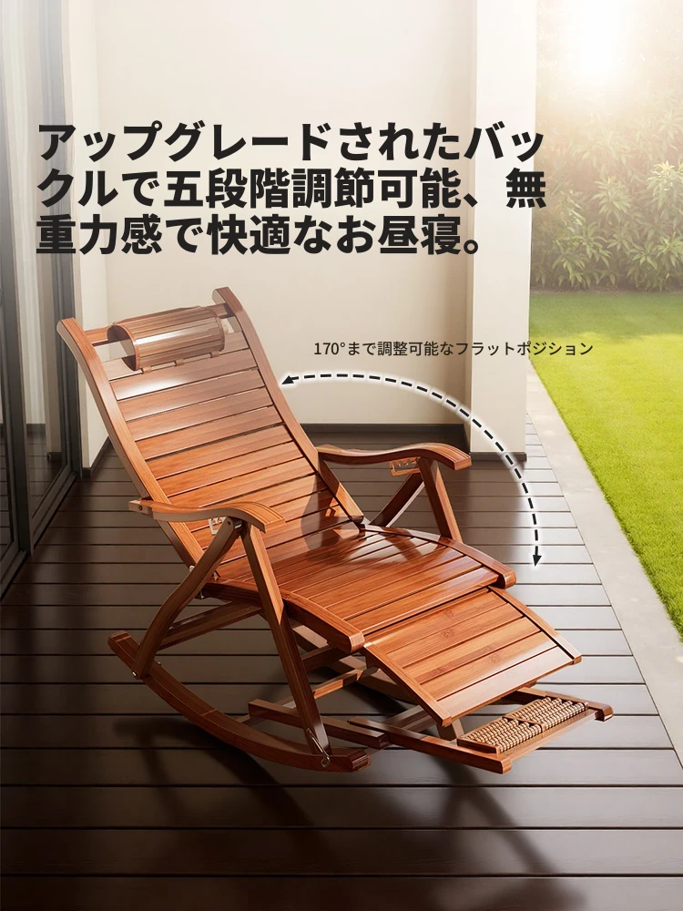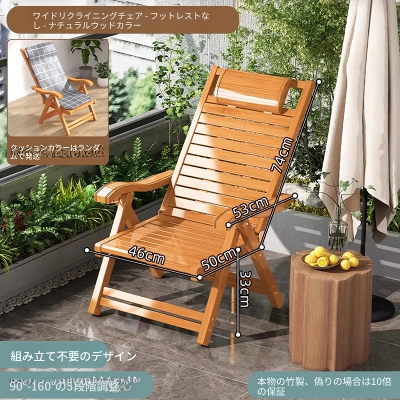 折りたたみ式のリクライニングチェア - 懒人のための快適な昼寝、老人に最適な竹製リラックスチェア。自宅のバルコニーでくつろぎ、心地よいひとときをお楽しみください!