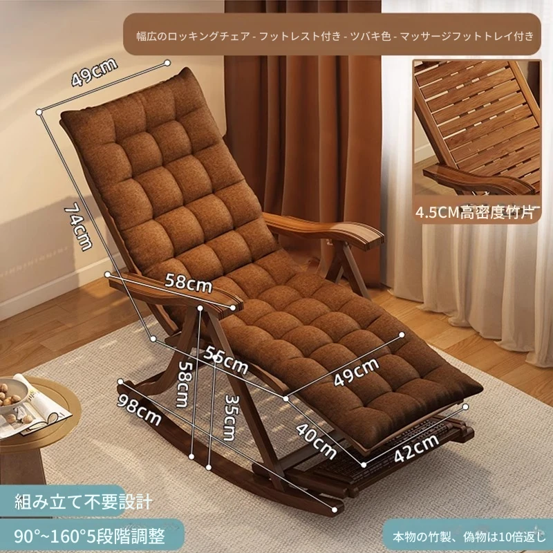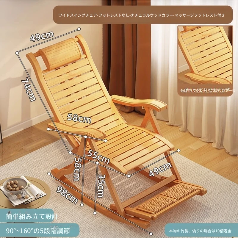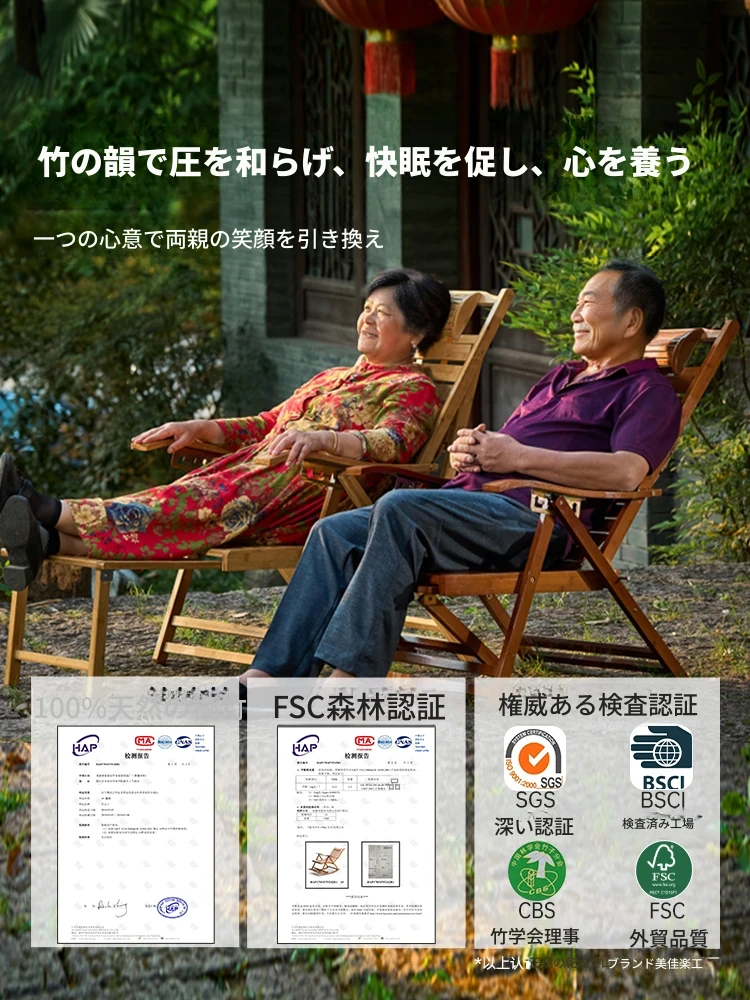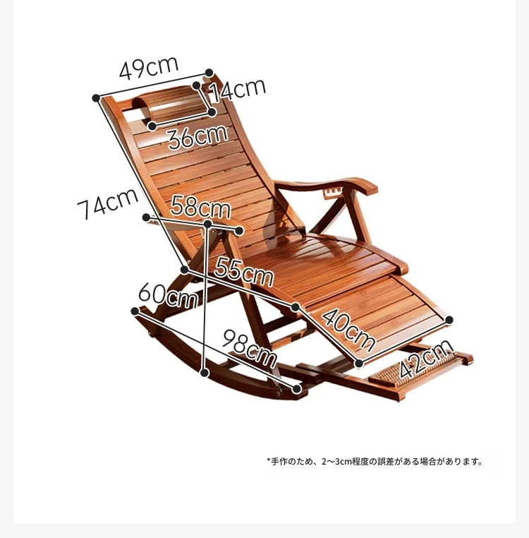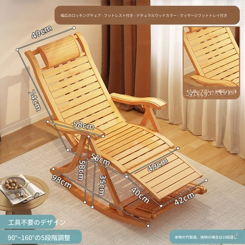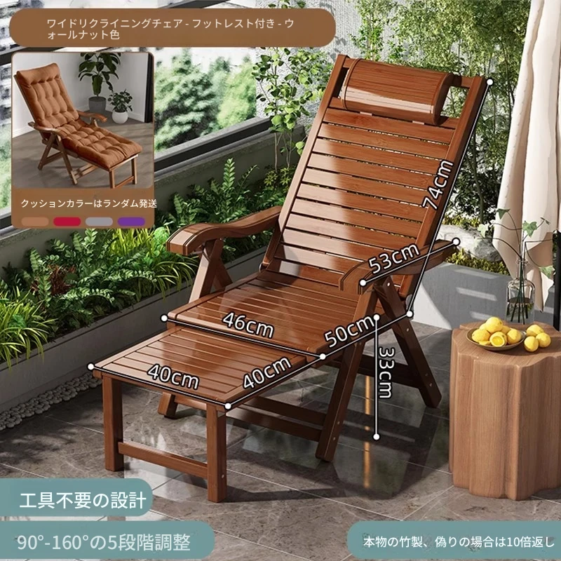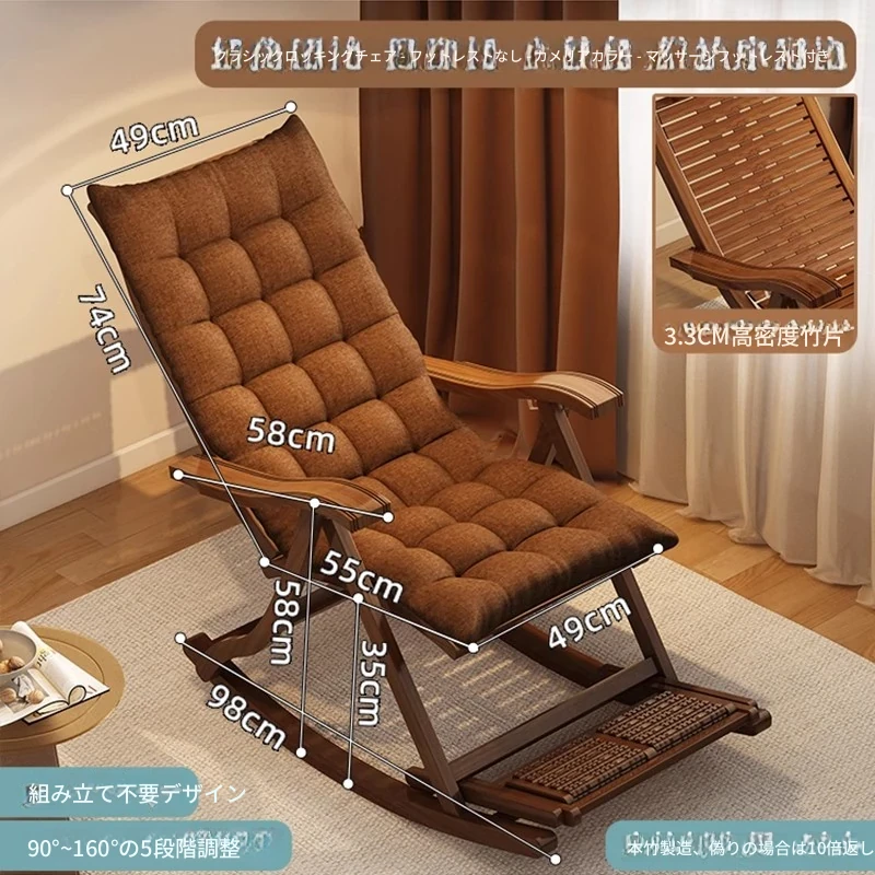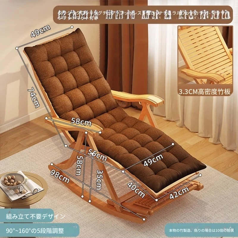 折りたたみ式のリクライニングチェア - 懒人のための快適な昼寝、老人に最適な竹製リラックスチェア。自宅のバルコニーでくつろぎ、心地よいひとときをお楽しみください!