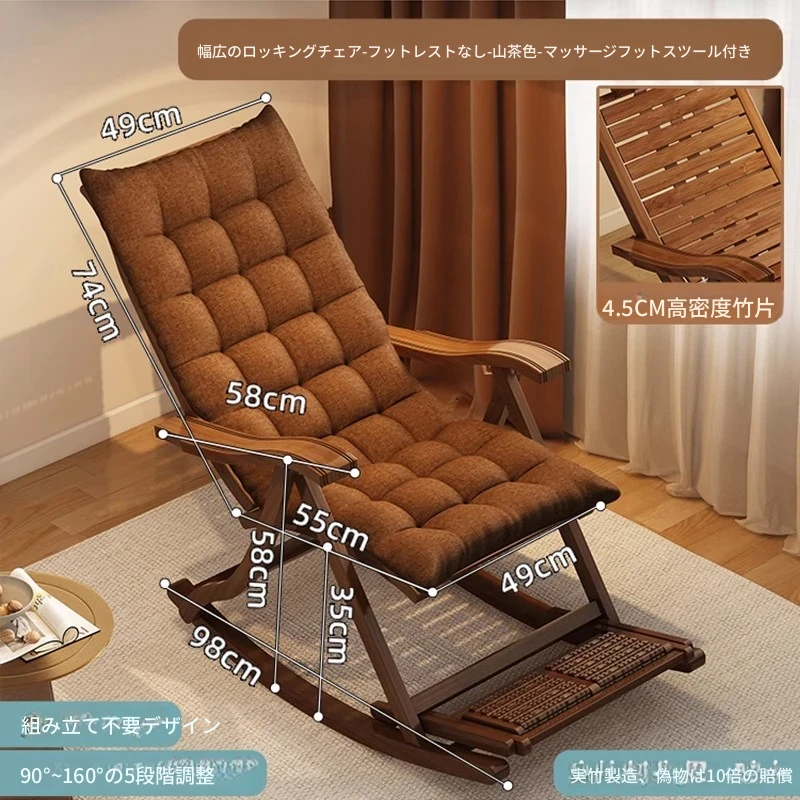 揺り椅子-アップグレードロングタイプ山茶色-厚手スペースクッション【マッサージハンマー付き/強化版】