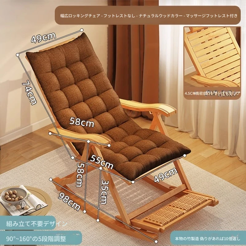 揺り椅子-アップグレード版山茶色-厚手スペースクッション【マッサージハンマー付き/強化版】