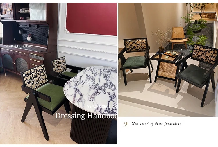 【レトロ+カラフル刺繍+グリーンベルベット】チャンディーガルチェア-360度回転
