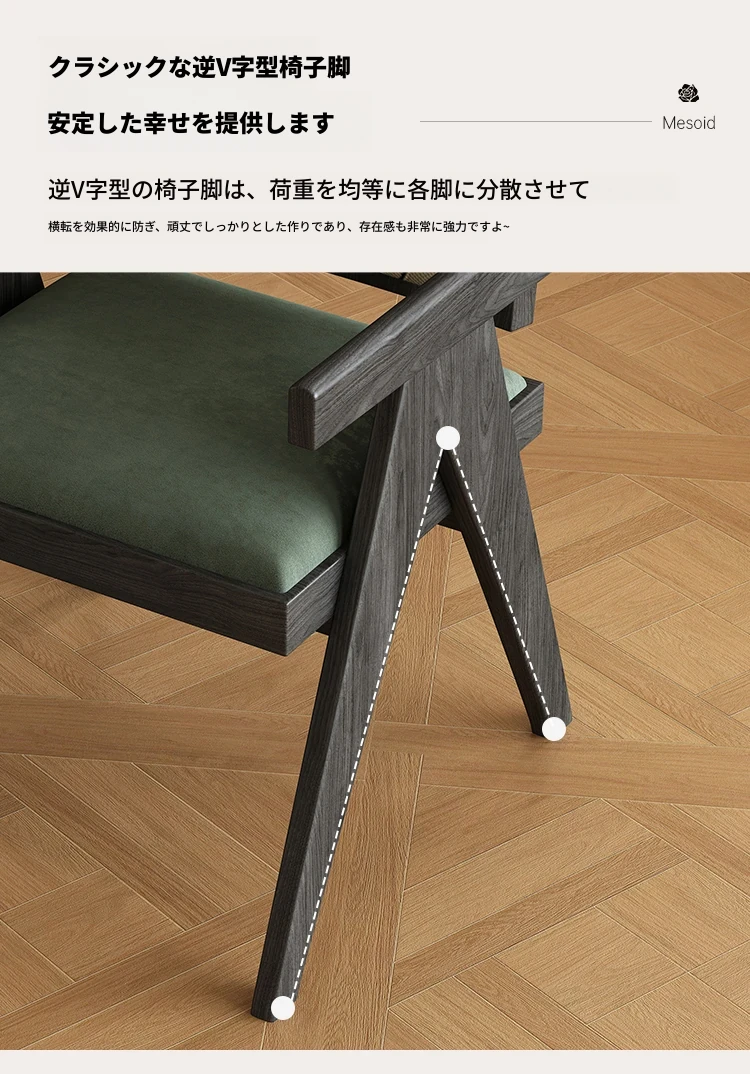 【レトロ+フェザーエンブロイダリー+グリーン本革】-アームレス-チャンディーガルチェア