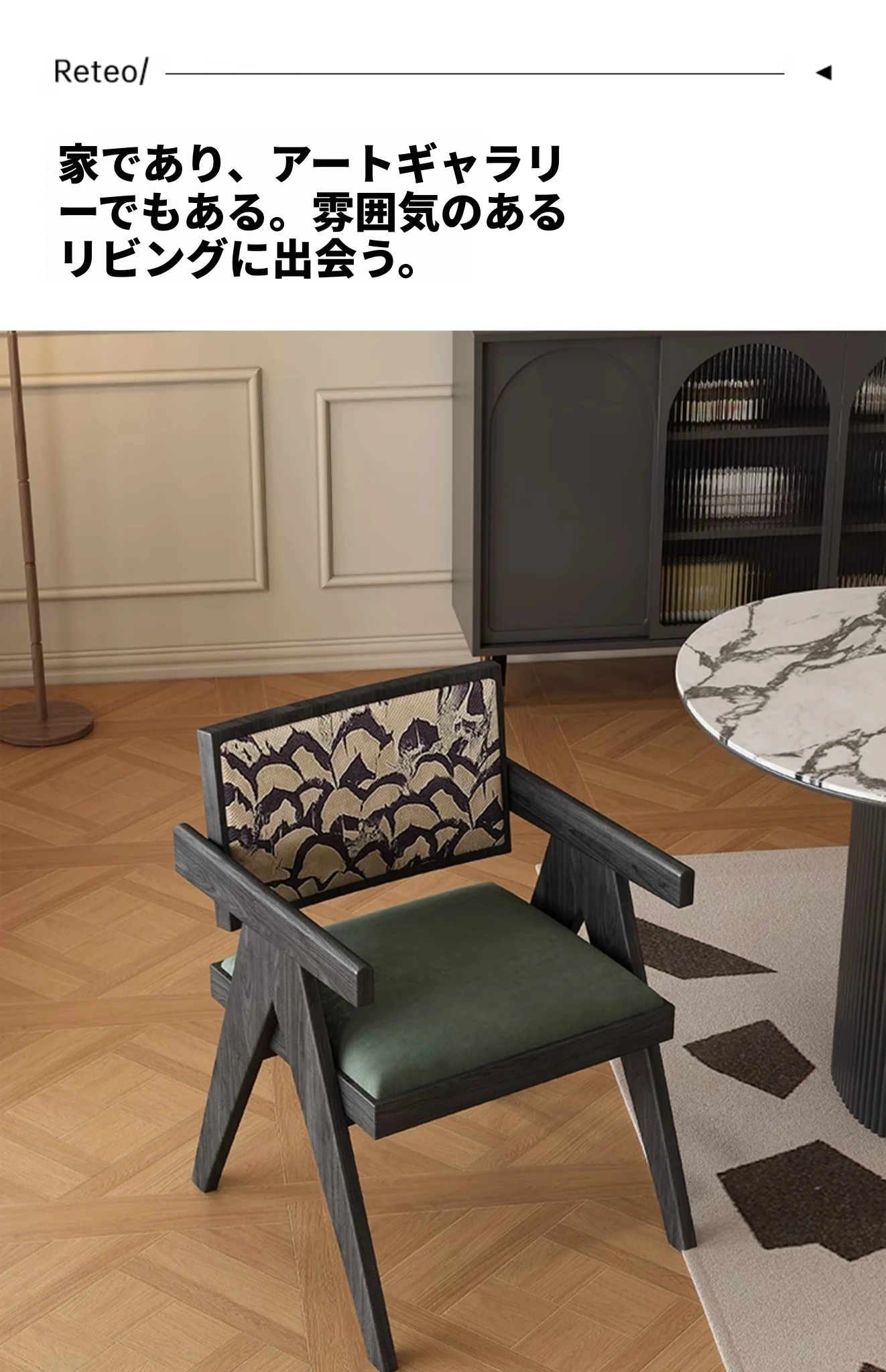 【エルフエンブロイダリー生地】チャンディーガルダイニングチェア