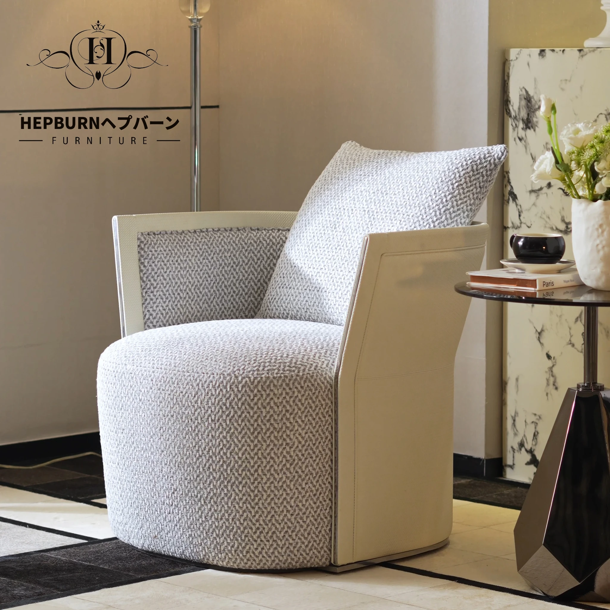 HEPBURN ヘプバーン モダンフレンチ ラグジュアリー オリジナルデザイン 小香風 真皮とファブリックのリラックスチェア ソファチェア - エレガントな空間を演出する、あなたの特別な時間にぴったりの一品です。