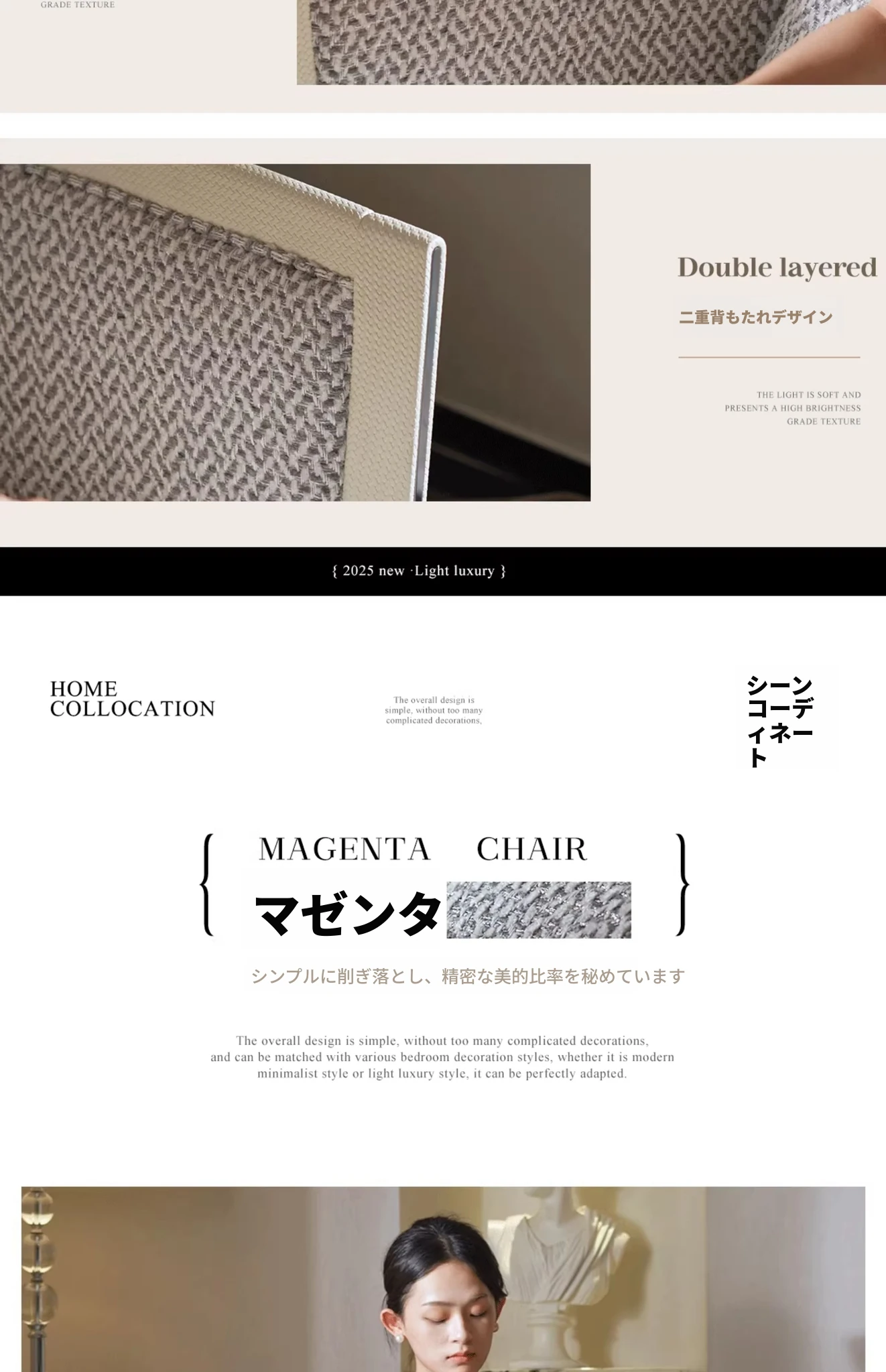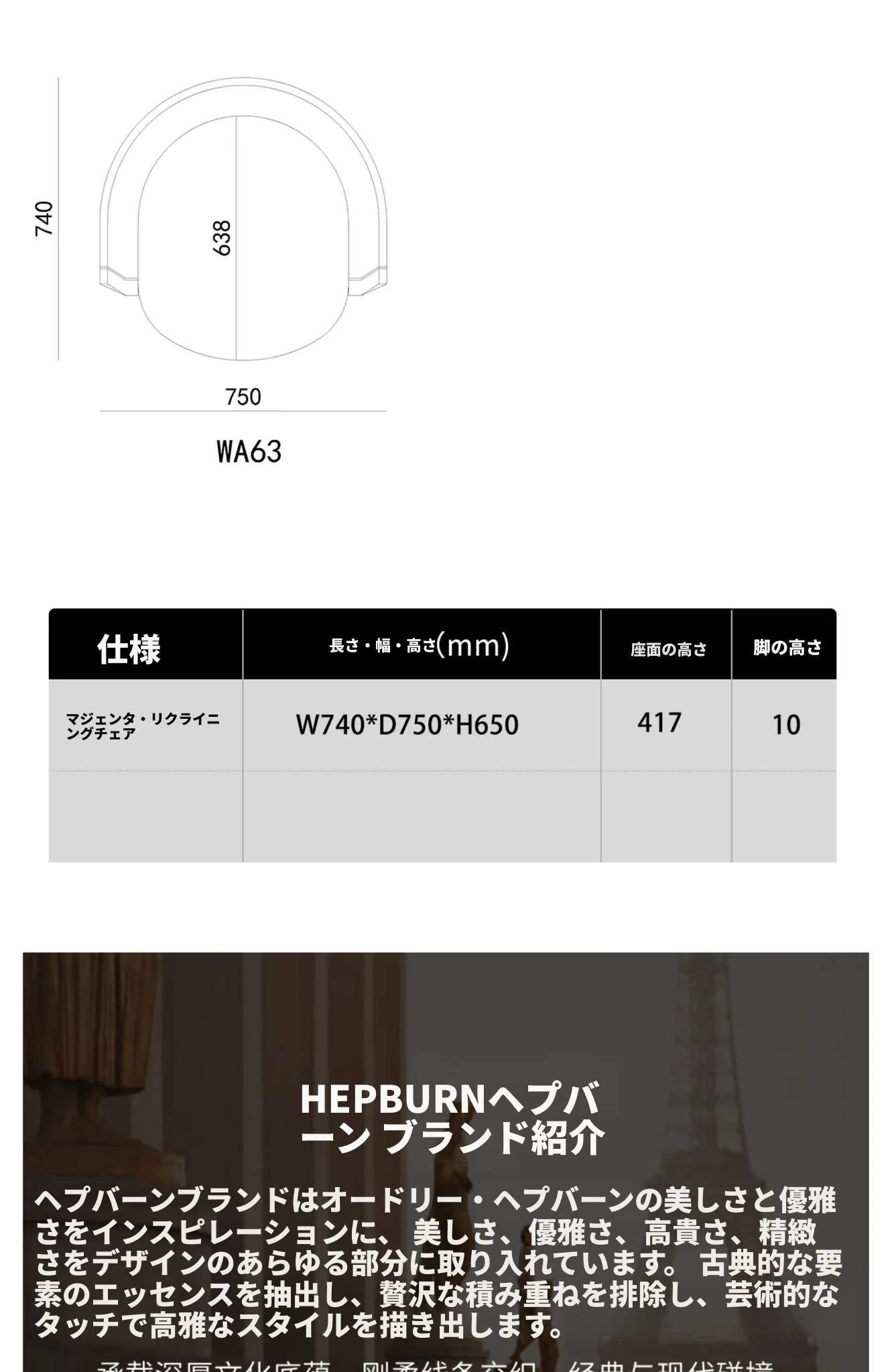 HEPBURN ヘプバーン現代フレンチスタイルのラグジュアリーオリジナルデザイン、シックな小香風布製リクライニングソファチェアで優雅なひとときを。