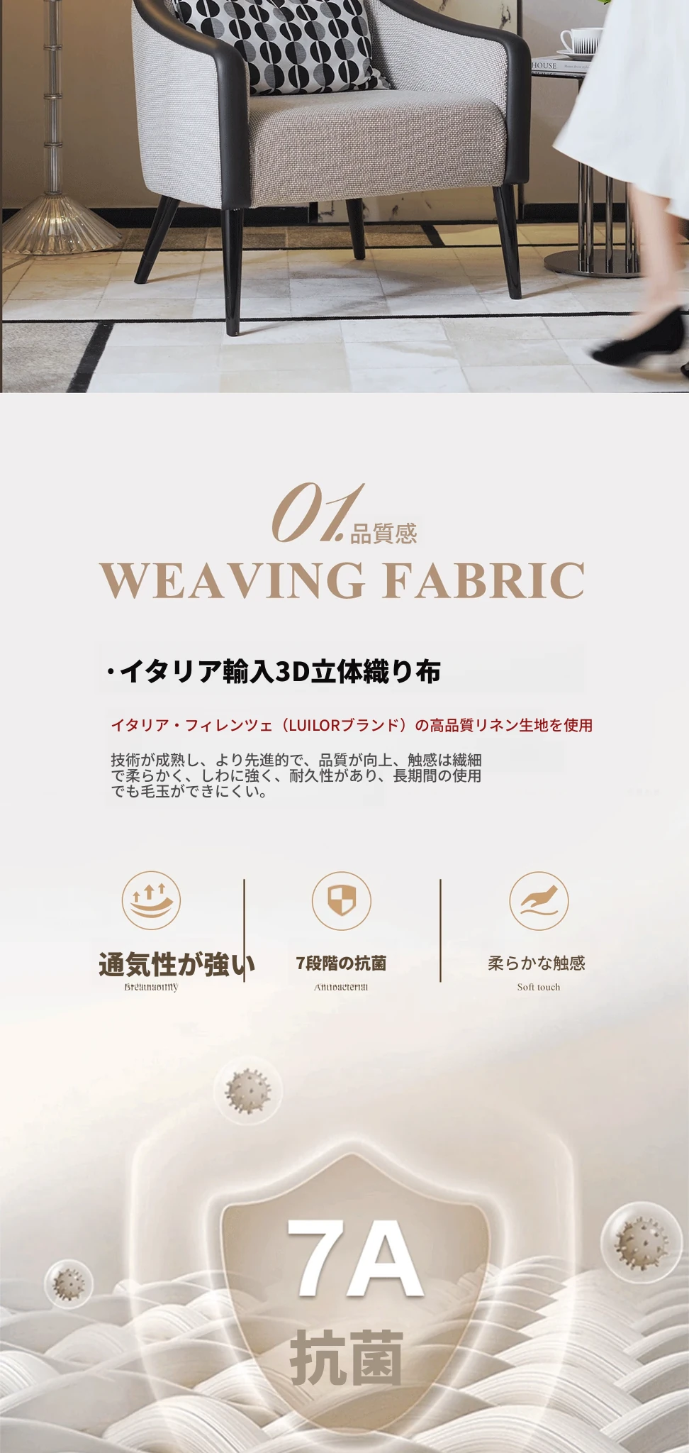 北欧スタイルの一人掛けソファ、布製でおしゃれなデザイン!アメリカンウッドのコーヒーテーブルにぴったりなリビング用L字型ソファ。リラックスできる虎のような居心地の良さを体験してください!