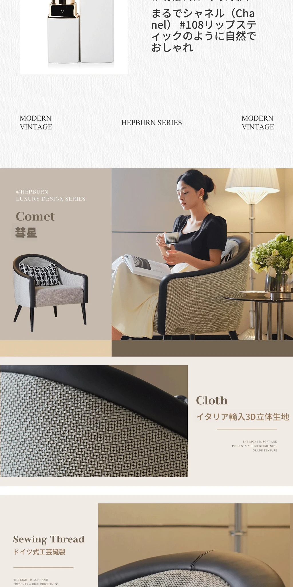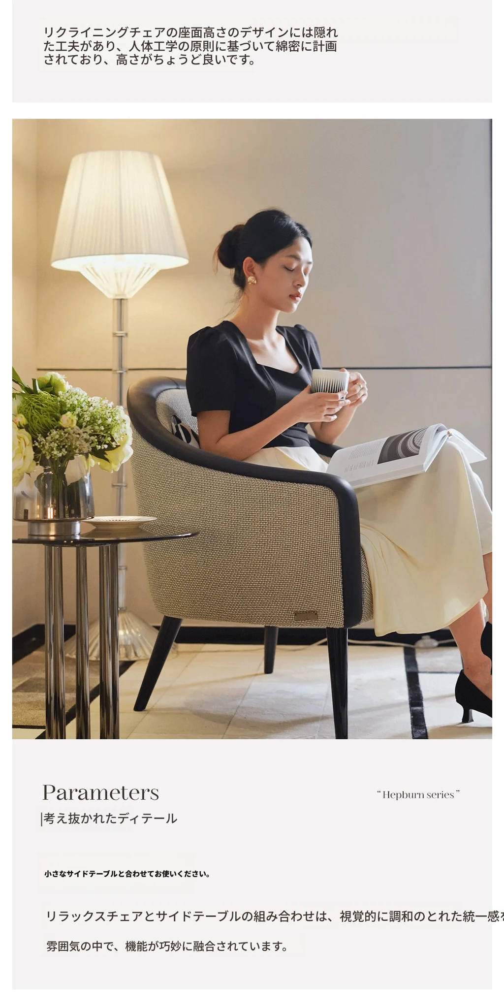 HEPBURN ヘプバーン現代フレンチスタイルのラグジュアリーオリジナルデザイン、シックな小香風布製リクライニングソファチェアで優雅なひとときを。