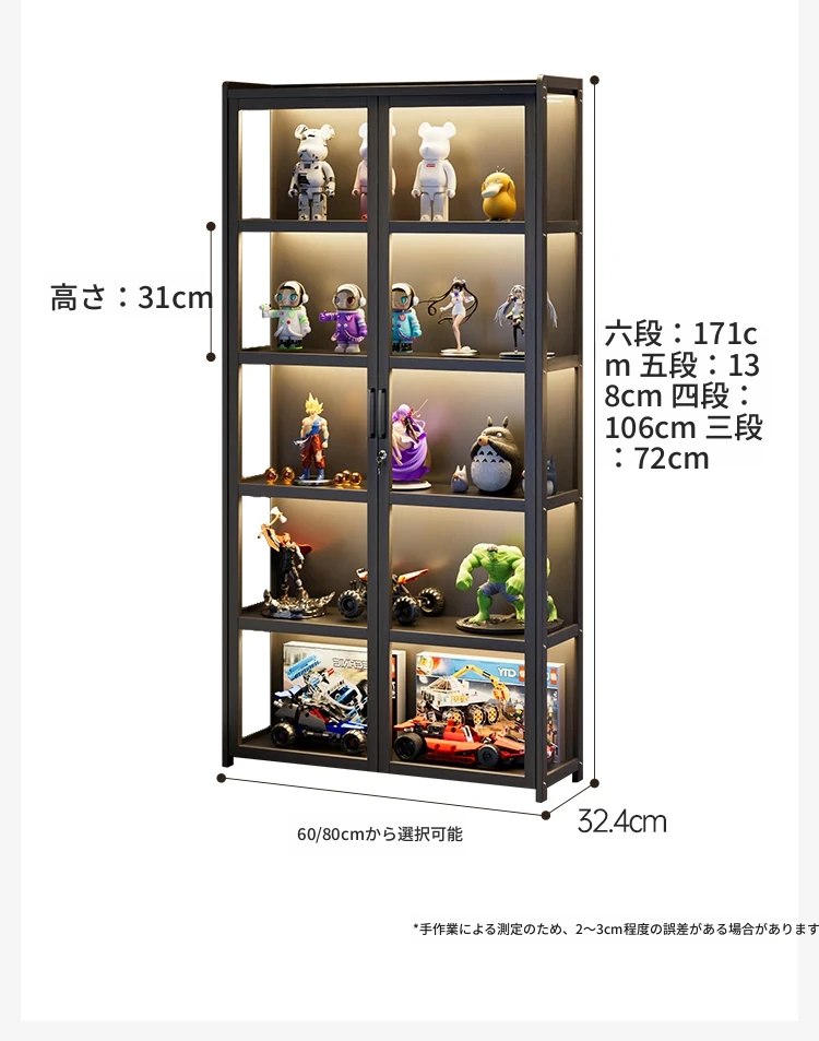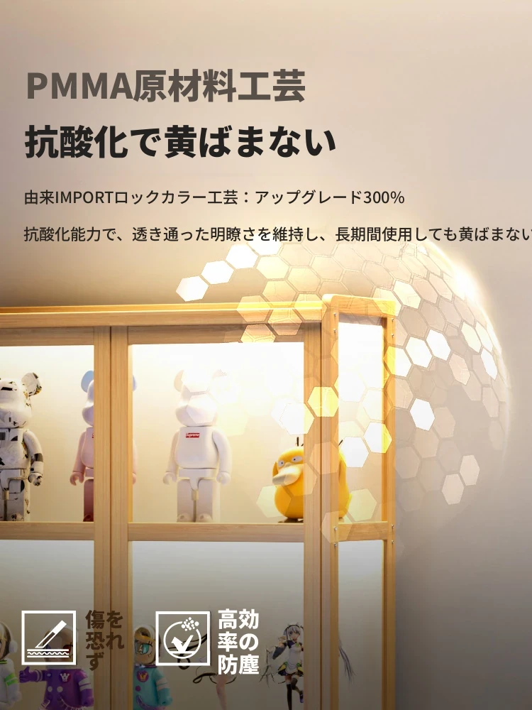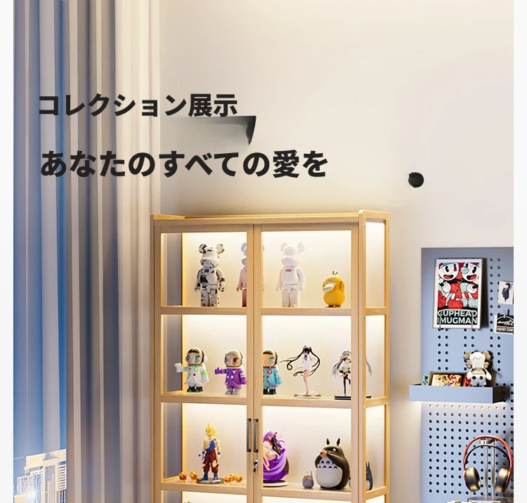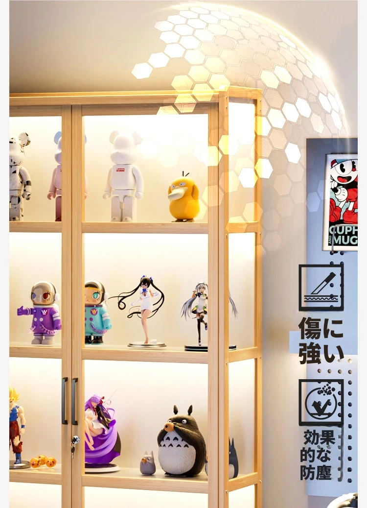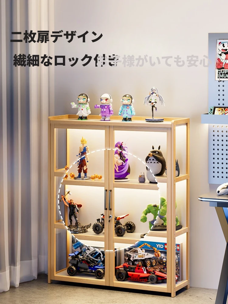 ライト付き・ロック付きの二重扉フィギュアケース!アクリル製の透明なブロック収納&ディスプレイラック、魅力的な小物を美しく演出するフロアスタンドキャビネット。あなたのコレクションを引き立てる完璧なアイテム!