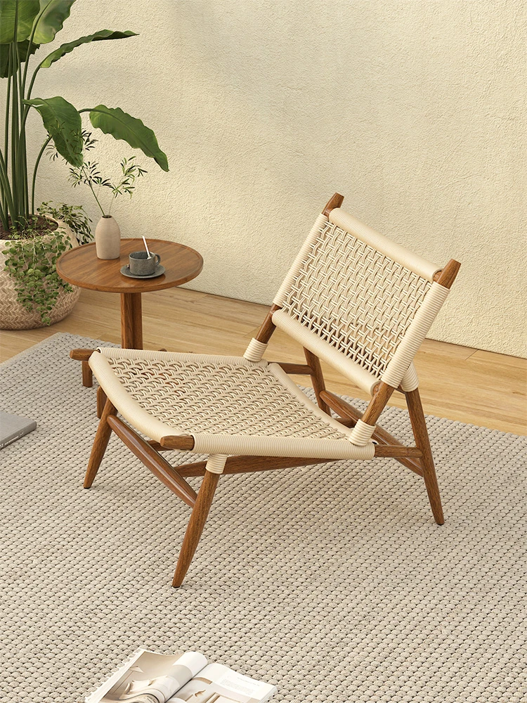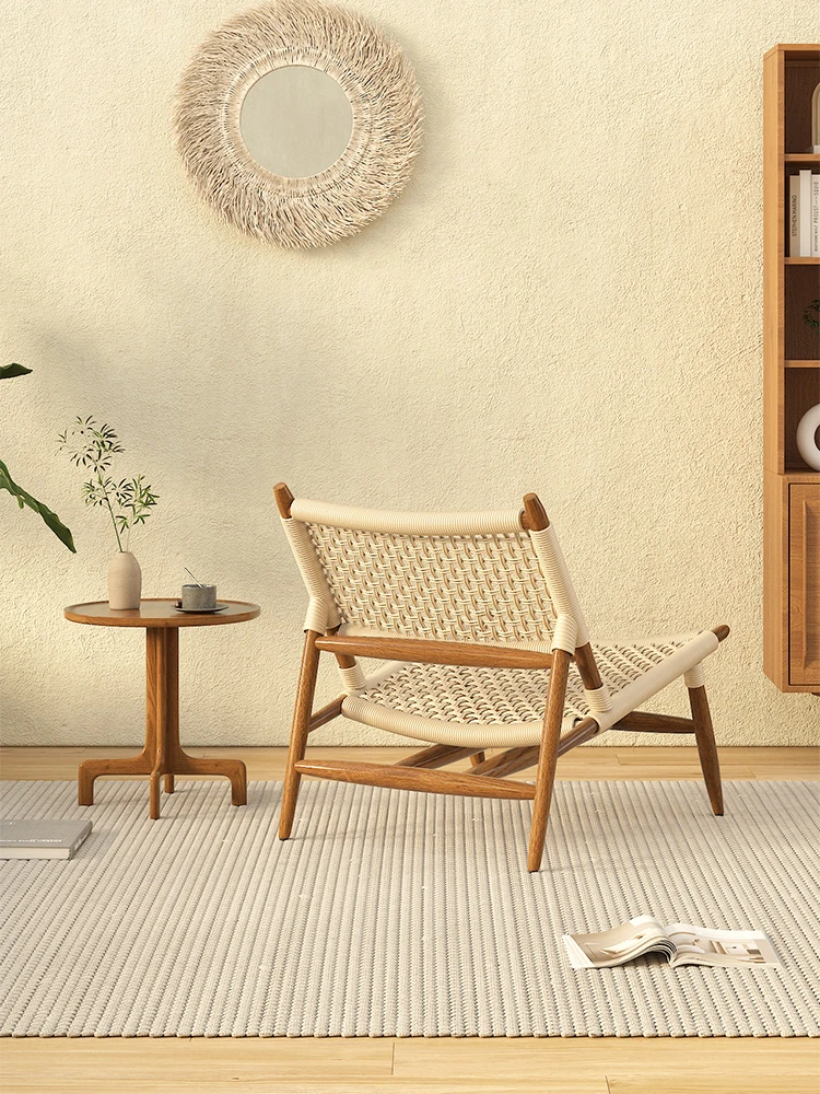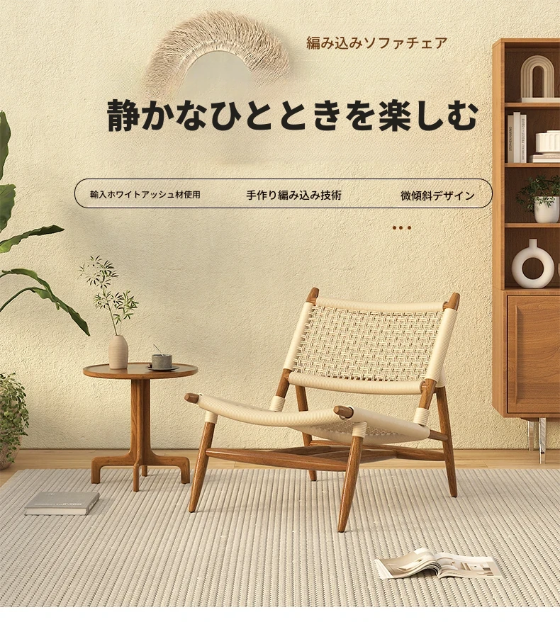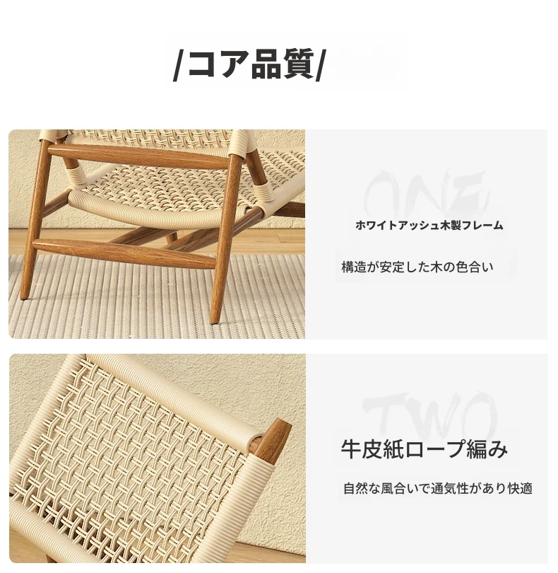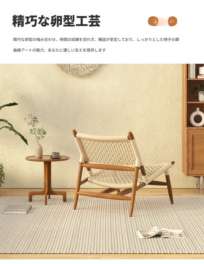 和風天然木製ラタン編みリラックスチェア|ホテル・民宿デザインに最適な居心地抜群のくつろぎ椅子|リビングやバルコニーにぴったりな家庭用ロッキングチェア!