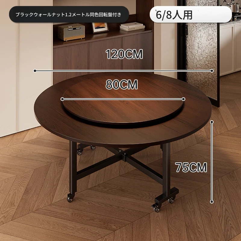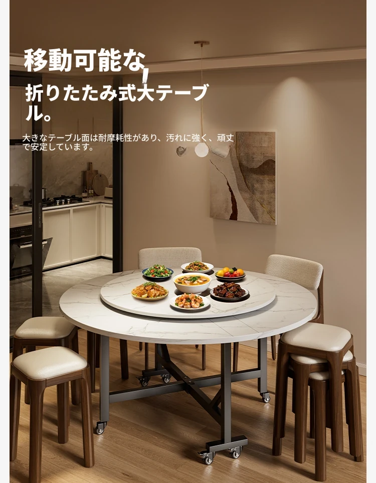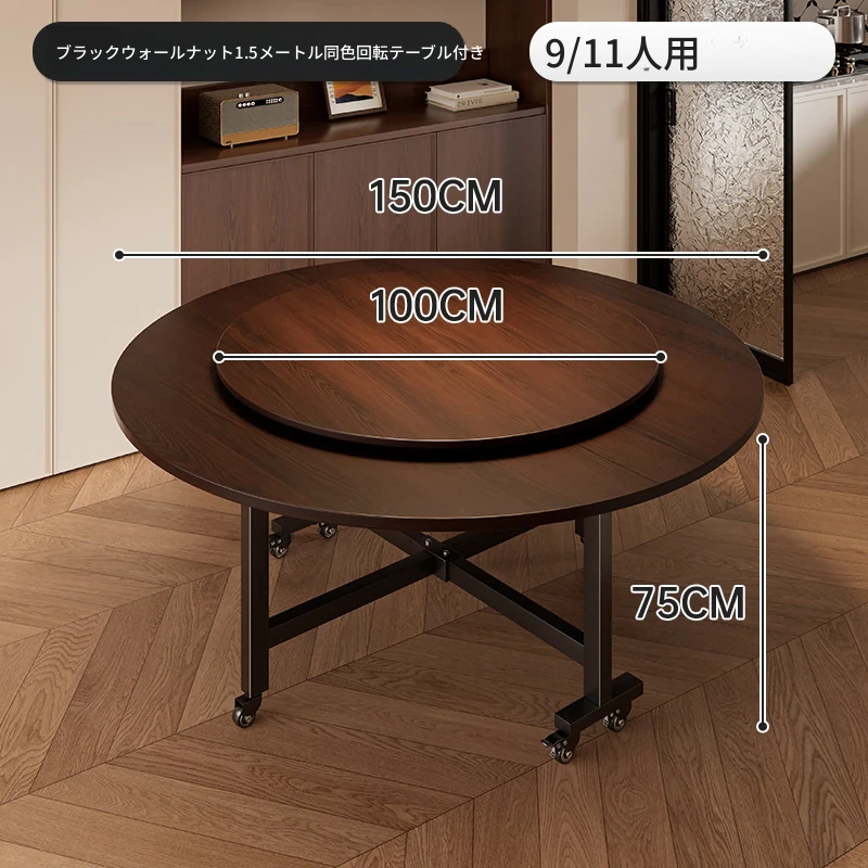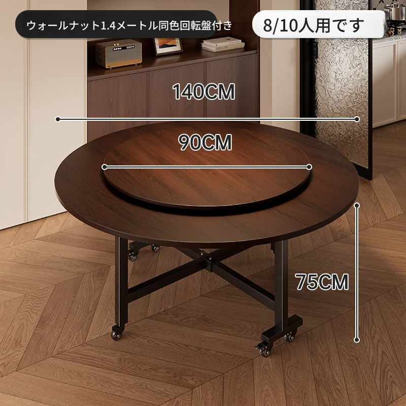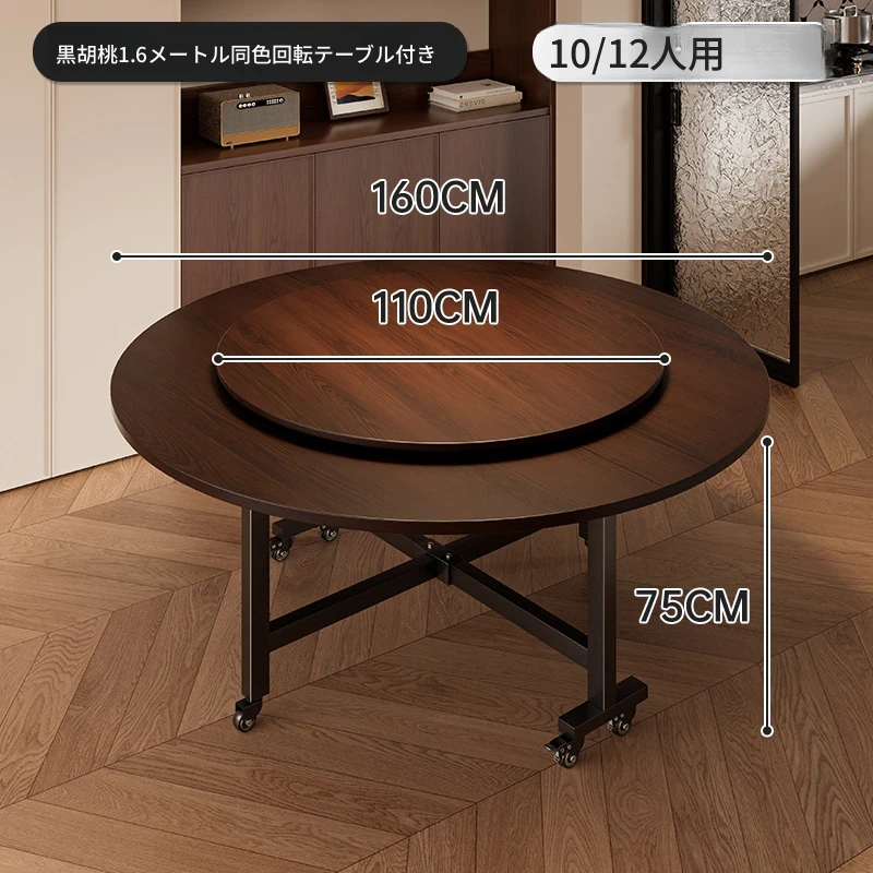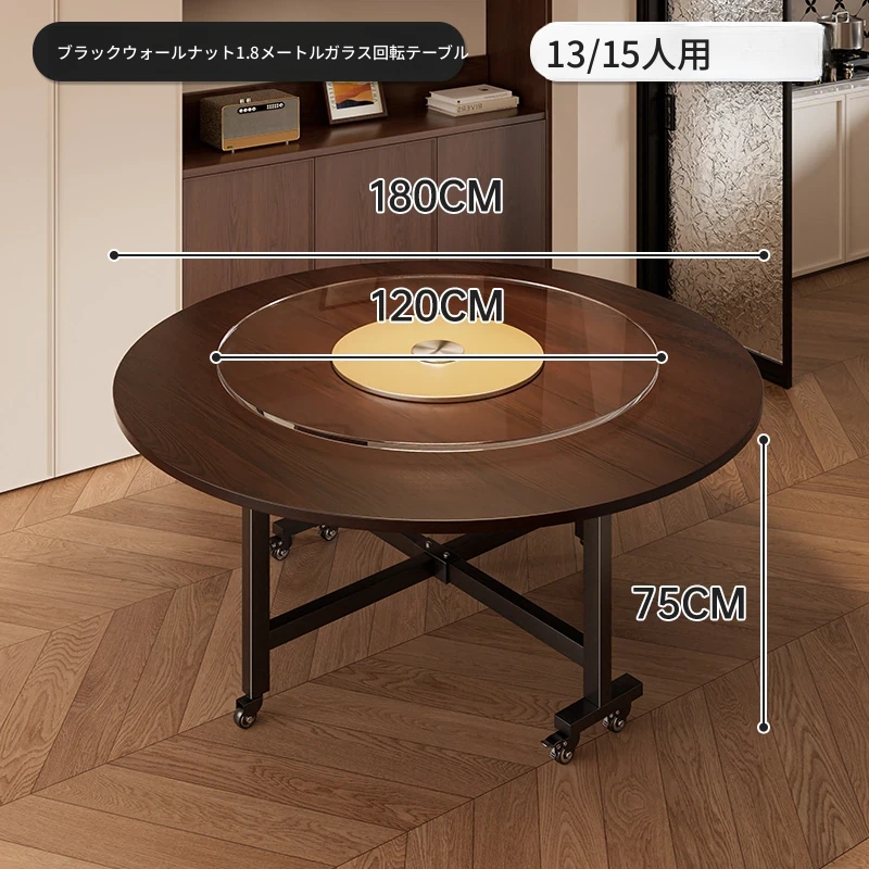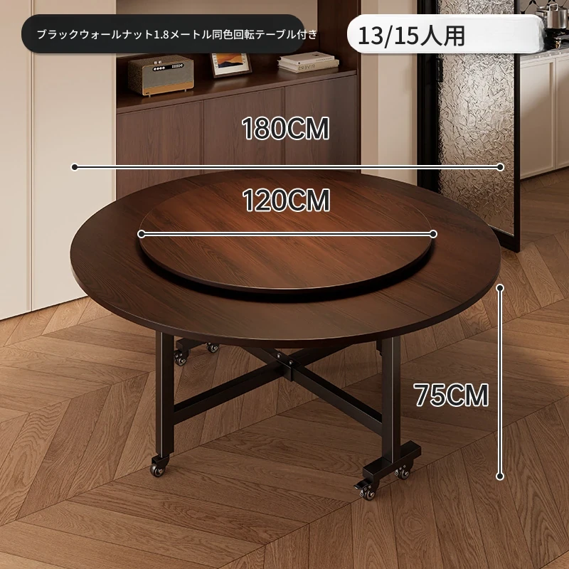 折りたたみ式ダイニングテーブル 大型回転式円卓 新型 家庭用・移動可能 12人・15人対応 商業用にも最適な無垢材使用のテーブル!家族や友人との楽しい食事の時間を演出します。