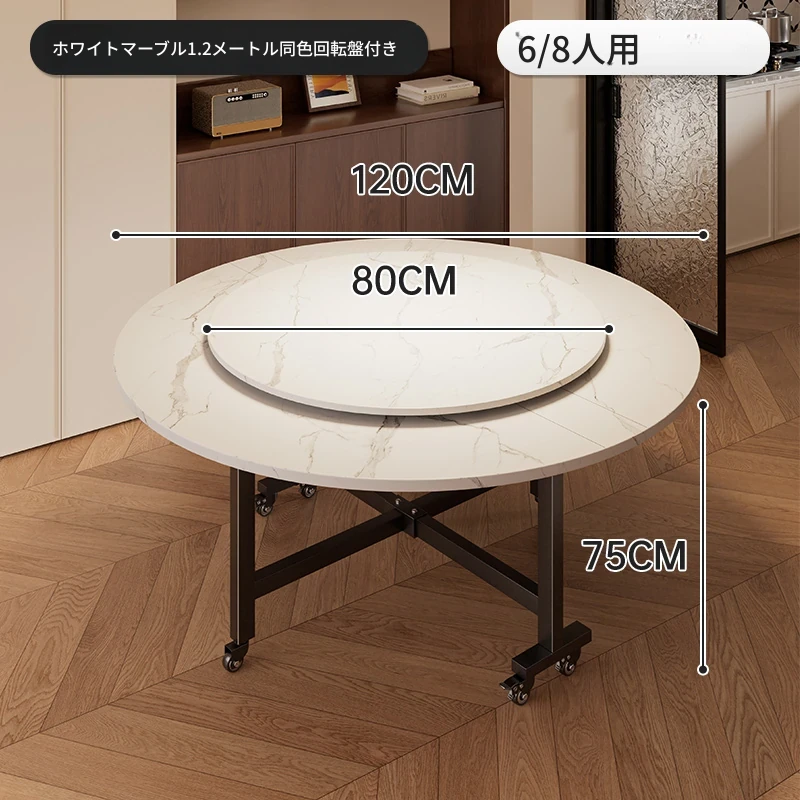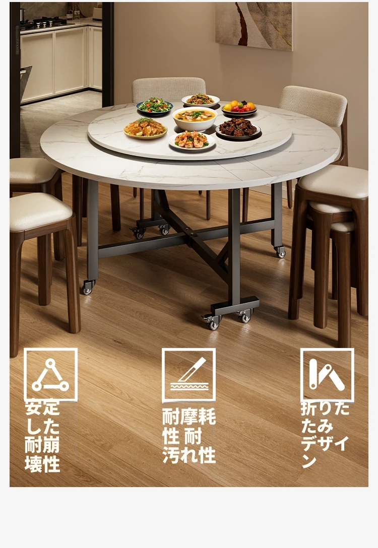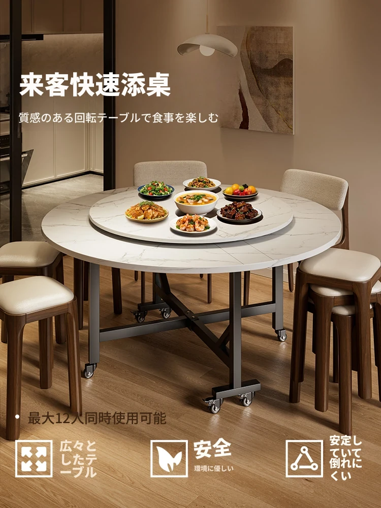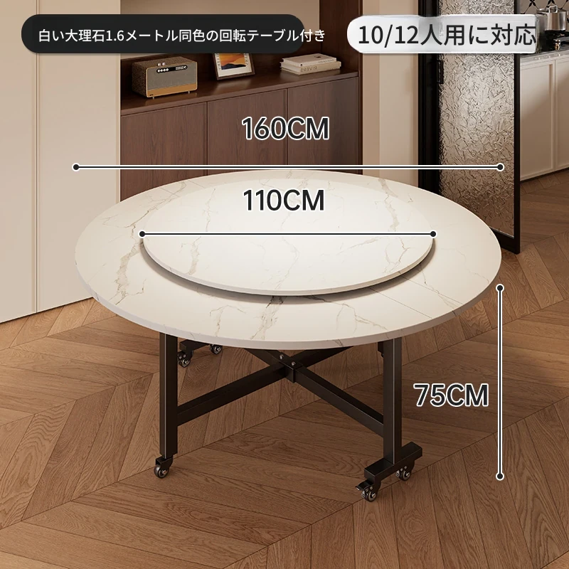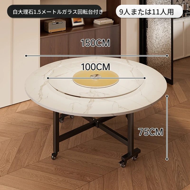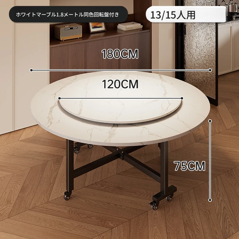 折りたたみ式ダイニングテーブル 大型回転式円卓 新型 家庭用・移動可能 12人・15人対応 商業用にも最適な無垢材使用のテーブル!家族や友人との楽しい食事の時間を演出します。