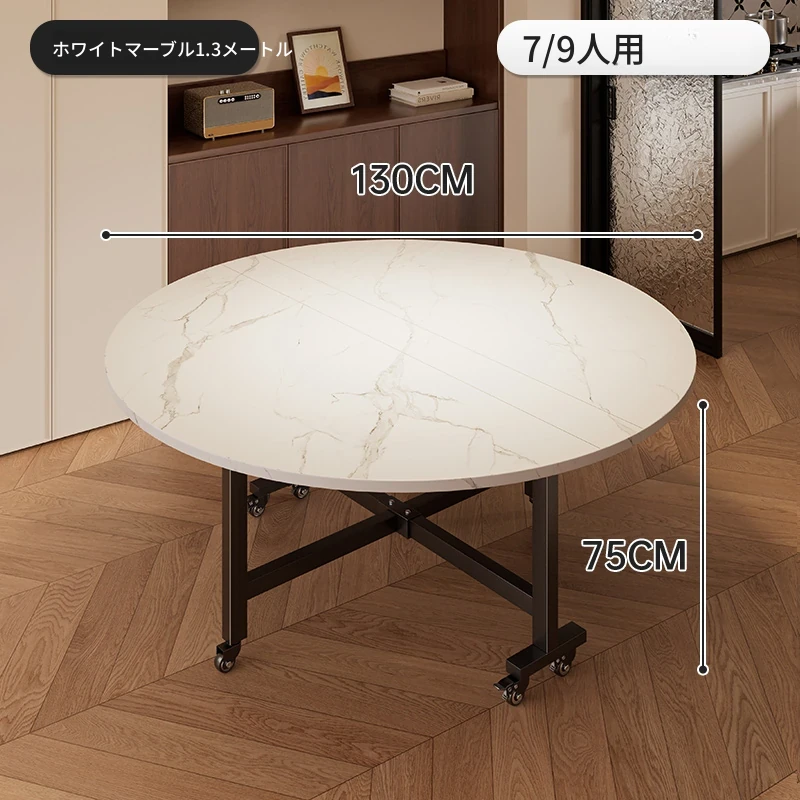 白理石模様-ガラステーブル1.3メートル【推奨7-9人】【防汚耐磨】【安定して崩れない】