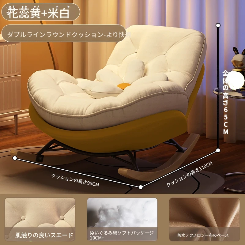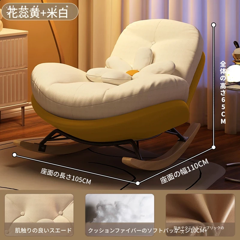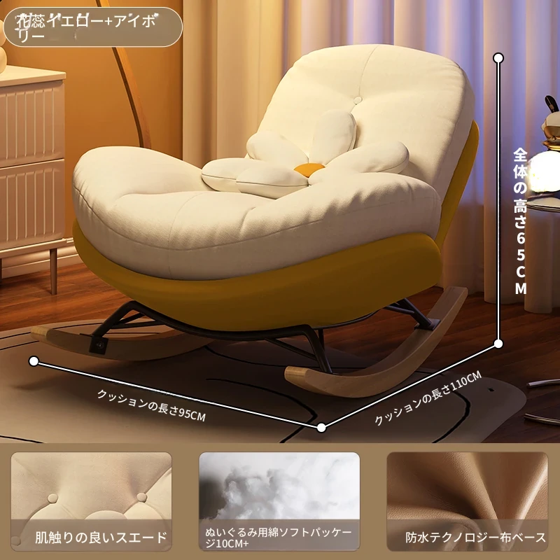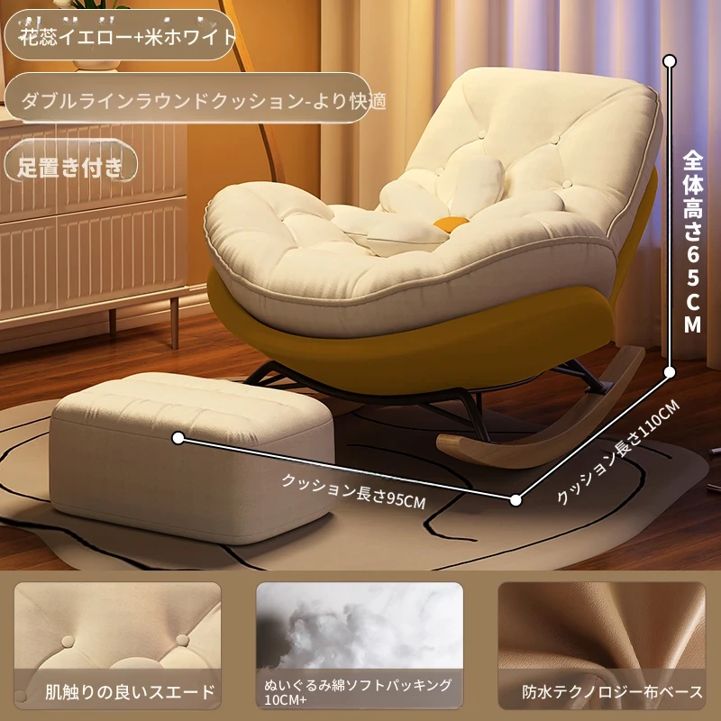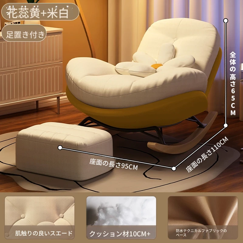 エクスクルーシブタイプ - フラワーミルクイエローアイボリー + フットスツール【ハニカムスエード 星级ホテル同款】