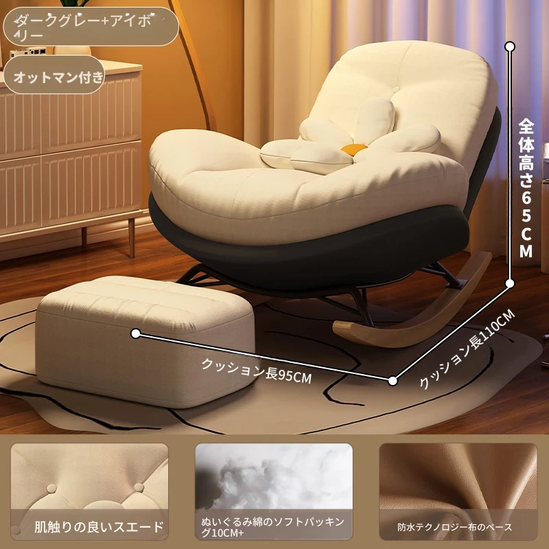 エクスクルーシブタイプ - ダークグレーアイボリー + フットスツール【ハニカムスエード 星级ホテル同款】