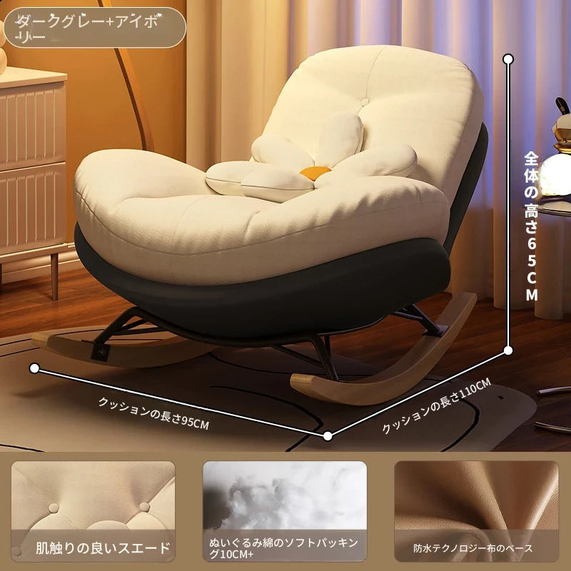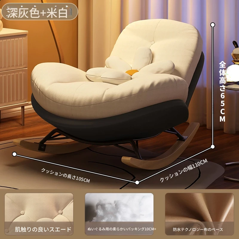 アップグレードビッグサイズ - ダークグレーアイボリー + フットスツール【スエード 星級ホテル同款】