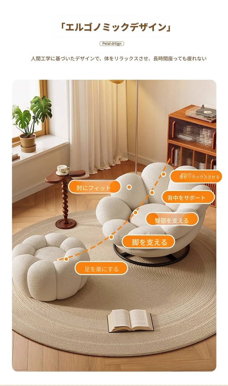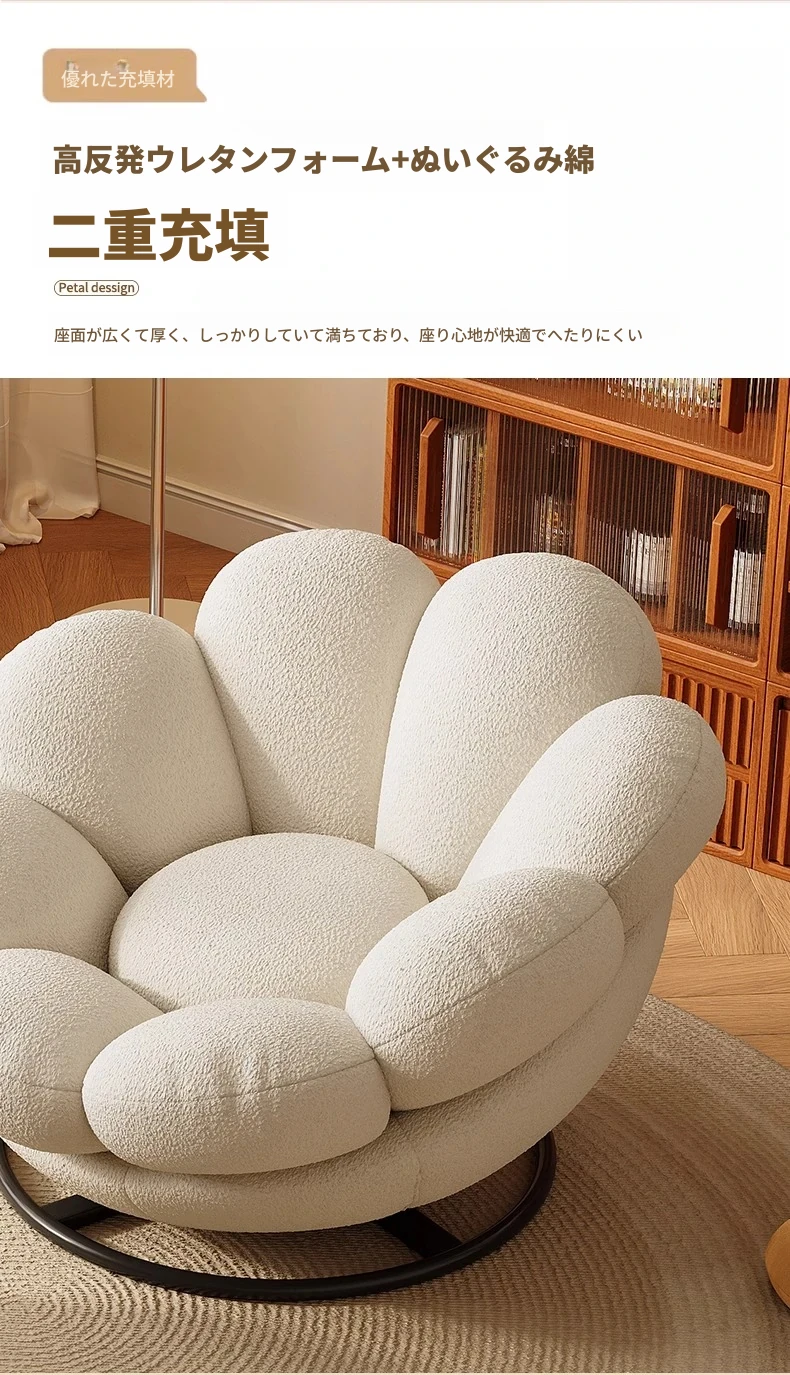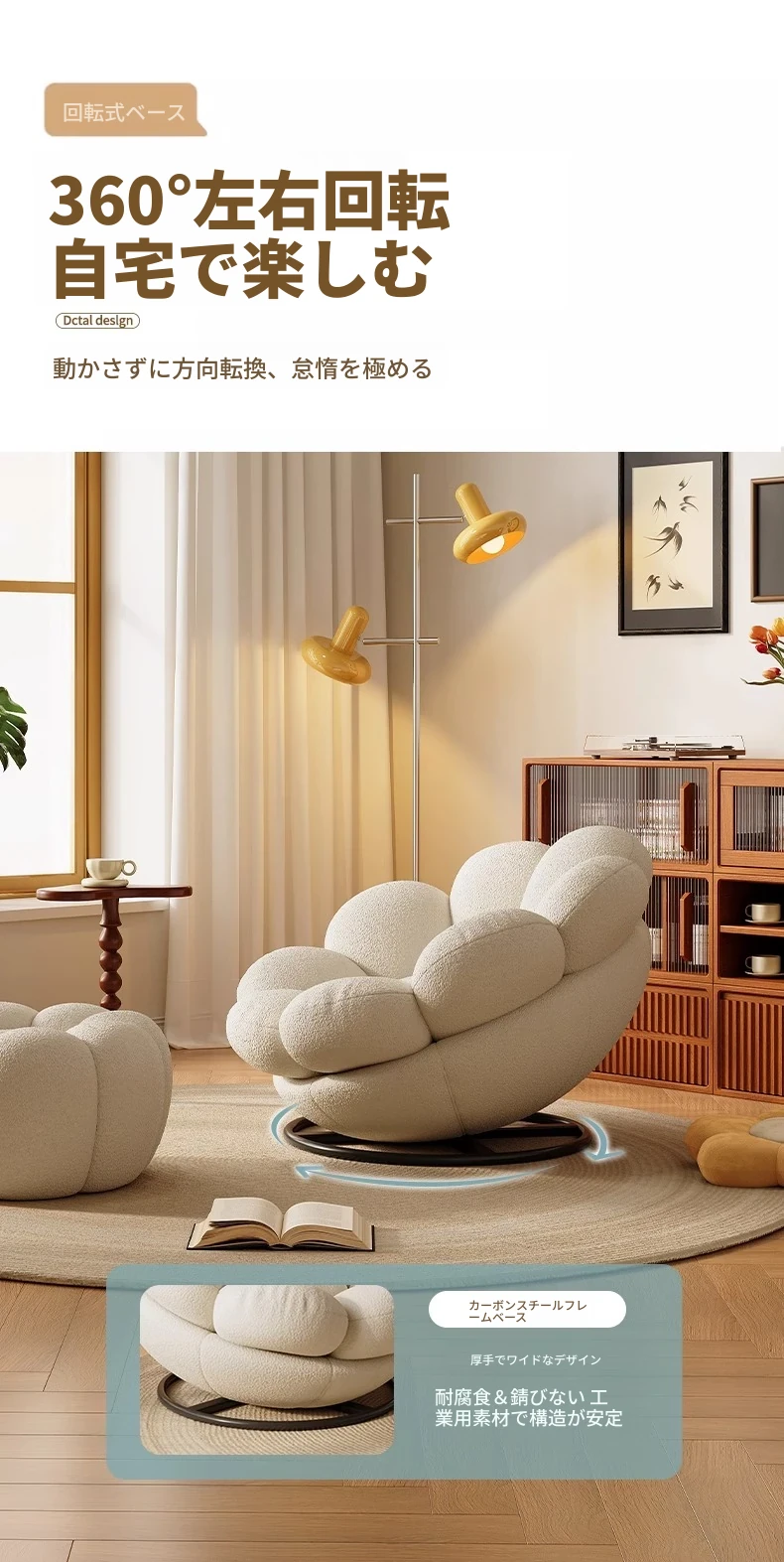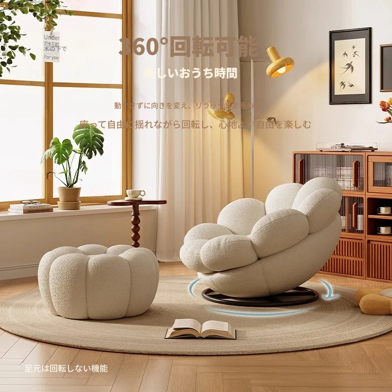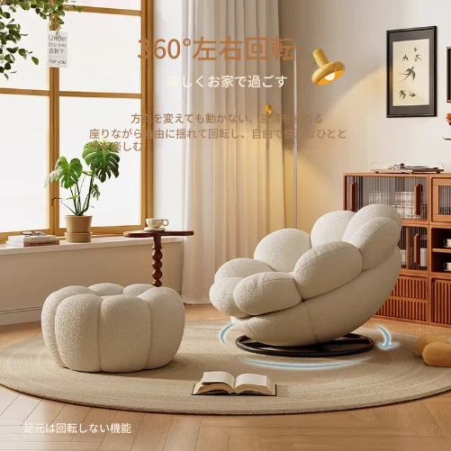 白色+フットレスト(肌触りの良いラムウール)360度回転