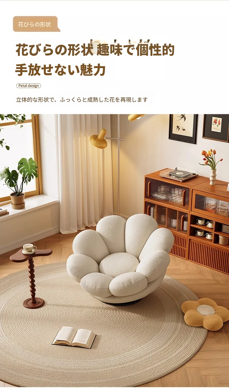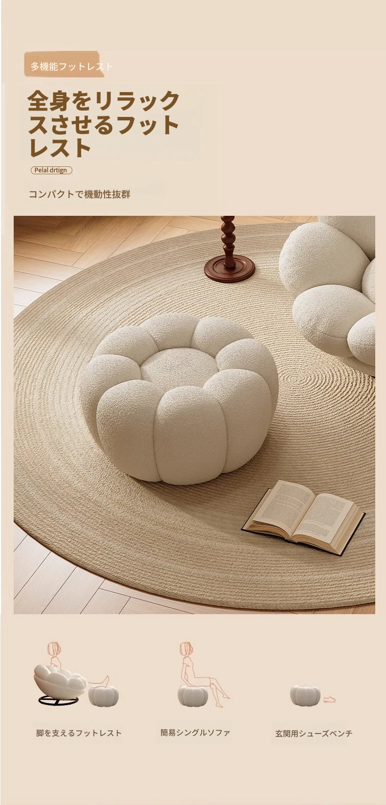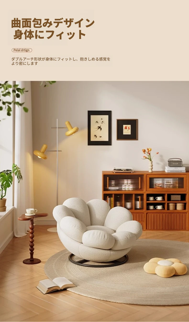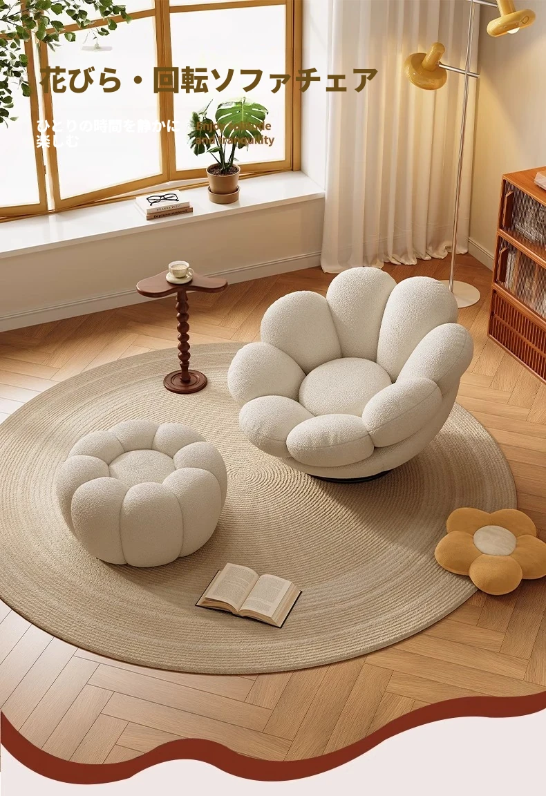 白色+フットレスト(肌触りの良いラムウール)360度回転