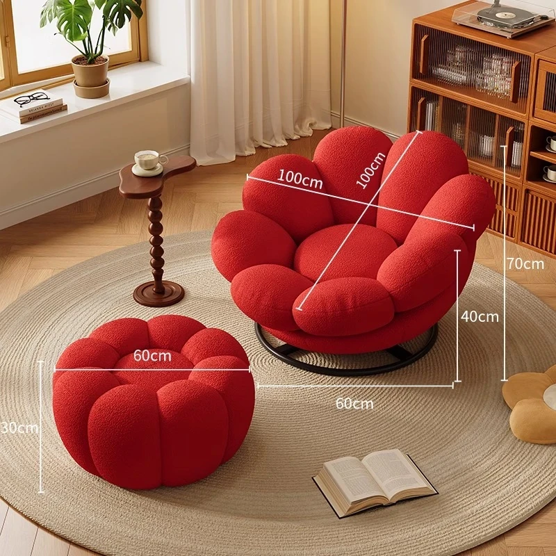 赤+フットレスト(肌触りの良いラムウール)360度回転