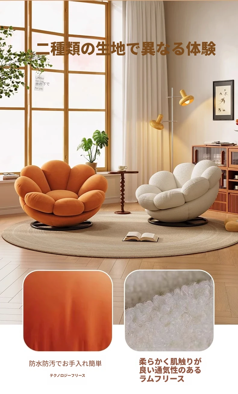 オレンジ+フットレスト(肌触りの良いラムウール)360度回転