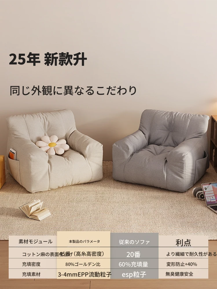 新作丨シングルタイプ⭐大サイズ--アイボリー【快適な包み込み 長時間座ってもへたらない】