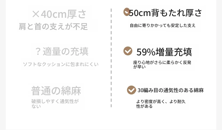ダブルタイプ❎大サイズ--ライトアイボリー【快適な包み込み 長時間座ってもへたらない】
