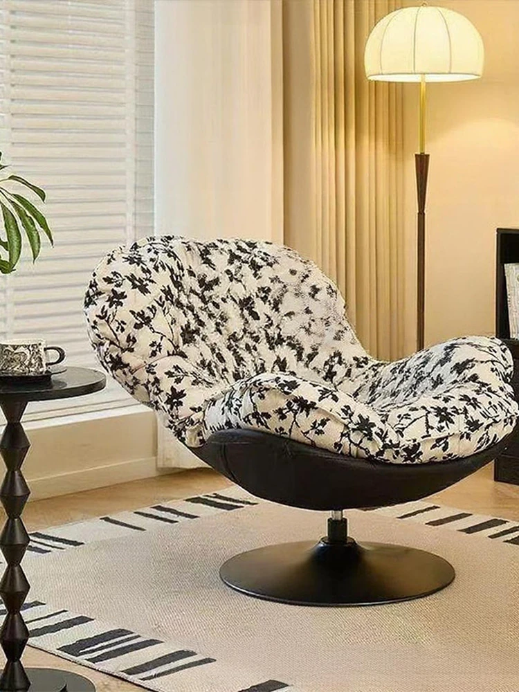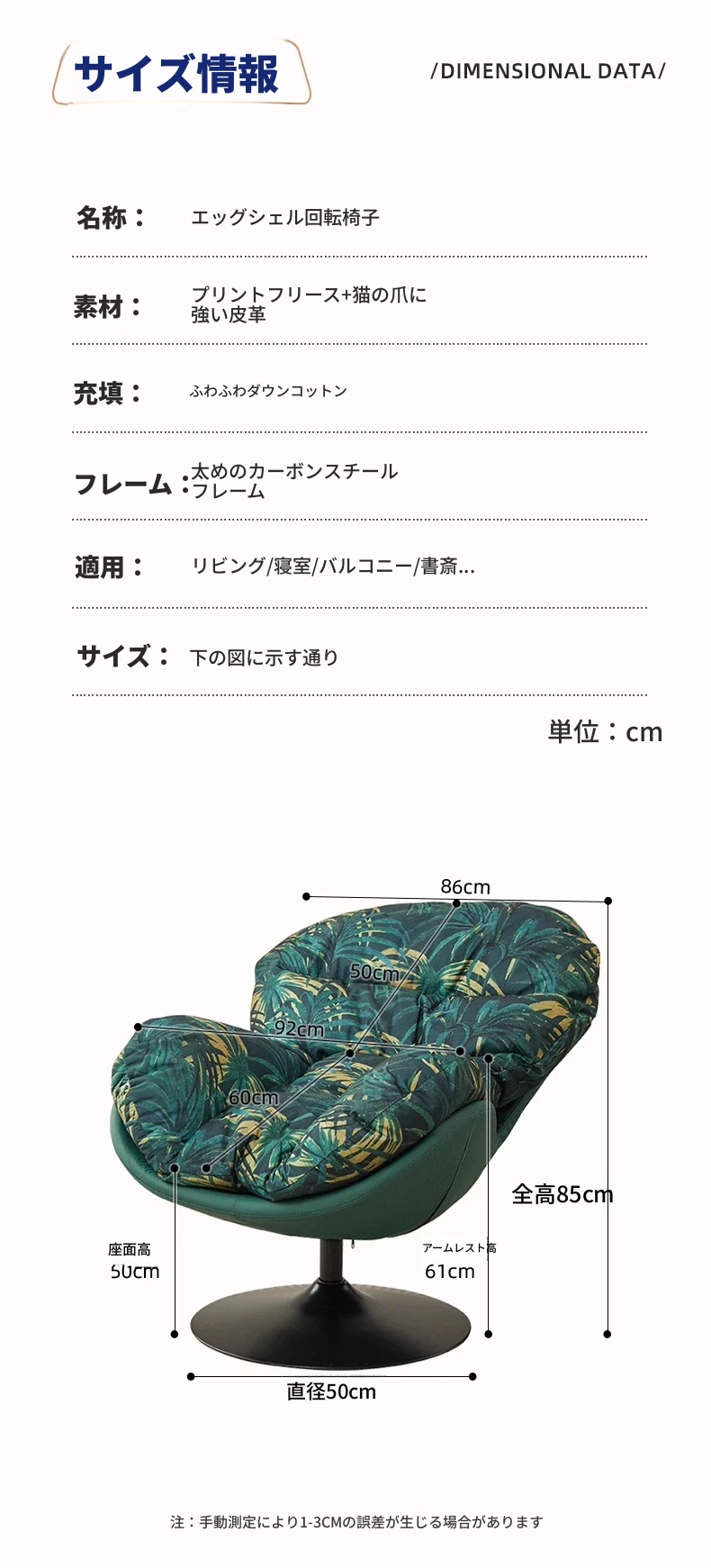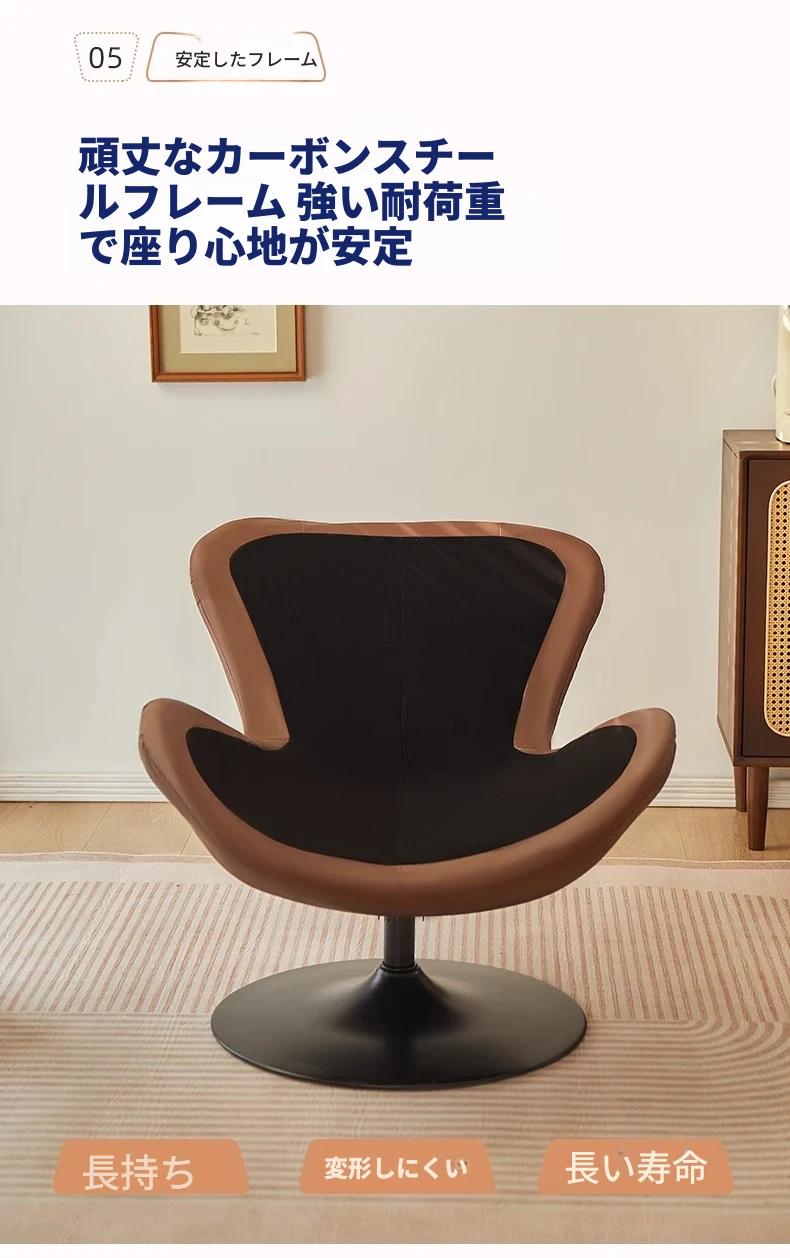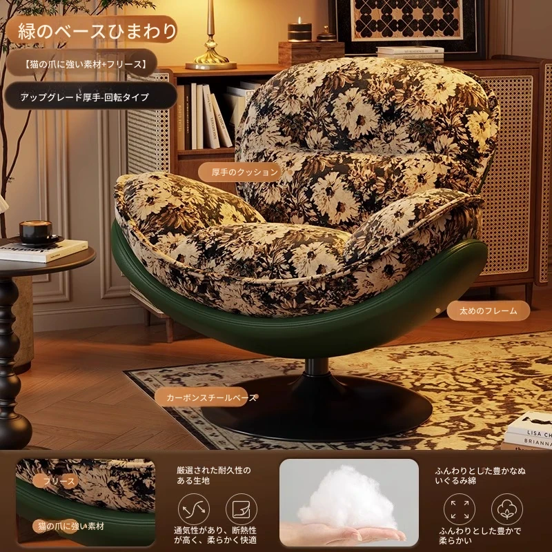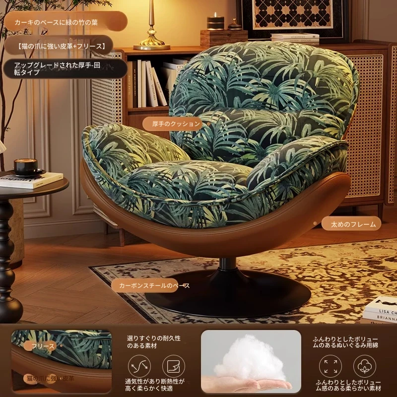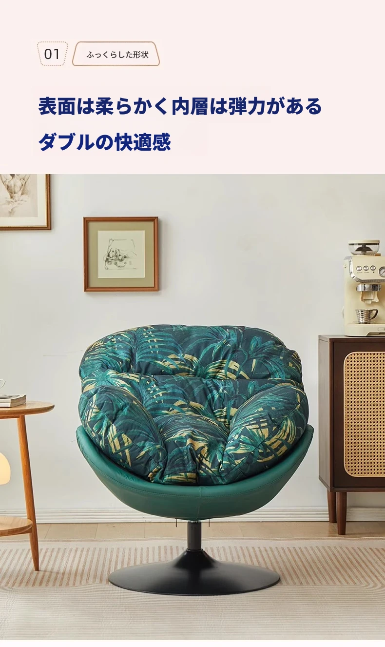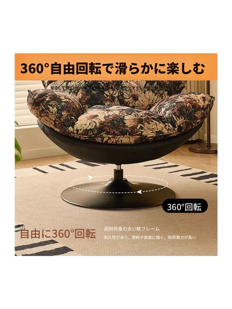 リラックスできるラウンジソファ!寝転びながらくつろげる一人用の回転リクライニングチェア。軽やかな高級感あふれるエッグシェイプデザインで、寝室にもぴったりのソファチェアです。