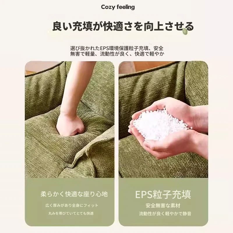 リラックスできる日本式豆袋ソファ - 小スペースに最適な一人用畳スタイルのクッションチェア。バルコニーや寝室にぴったりのクリエイティブなデザインで、くつろぎのひとときをお楽しみください!