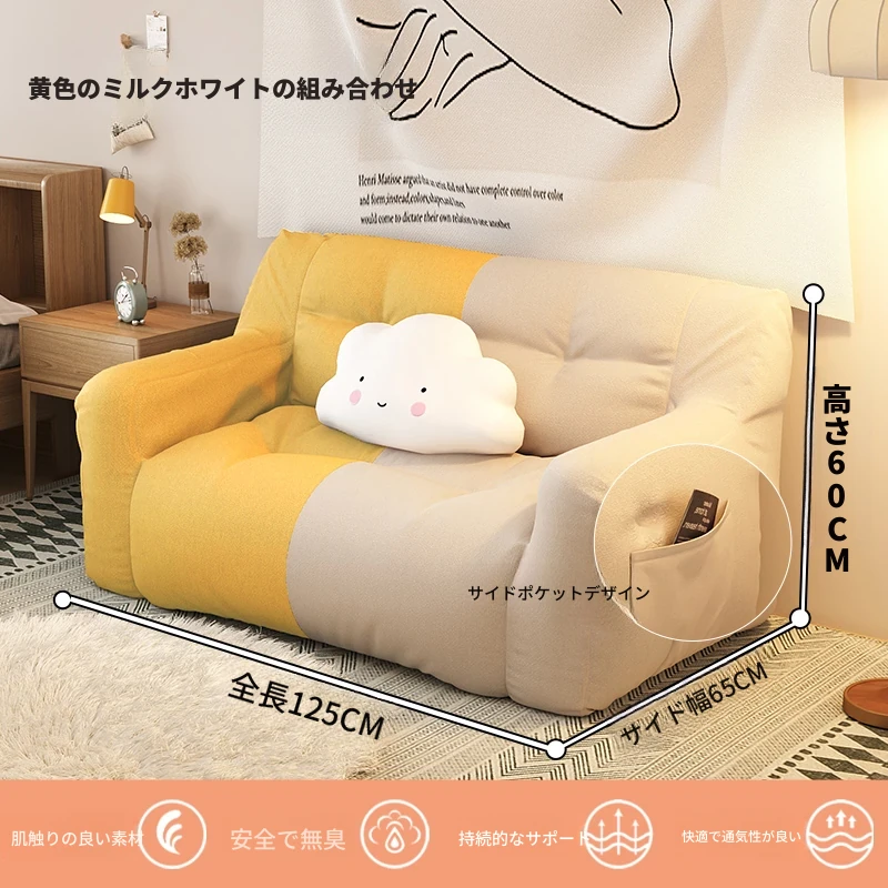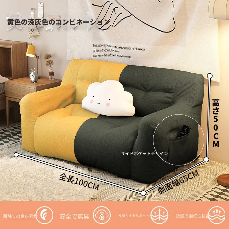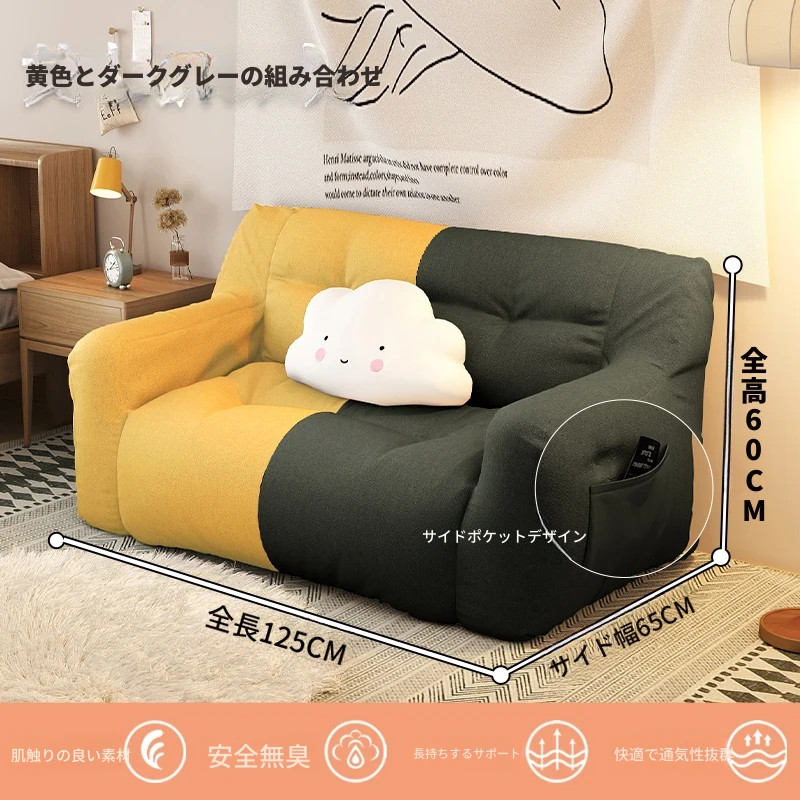 二人用-中サイズ❎レモンイエロー【充填量増加 長時間座ってもへこまない】