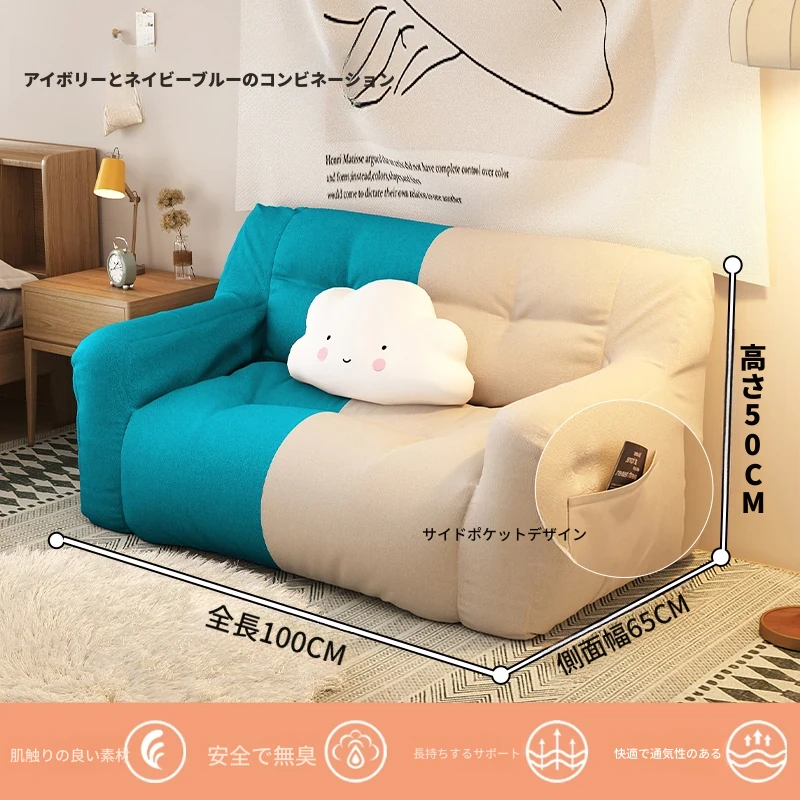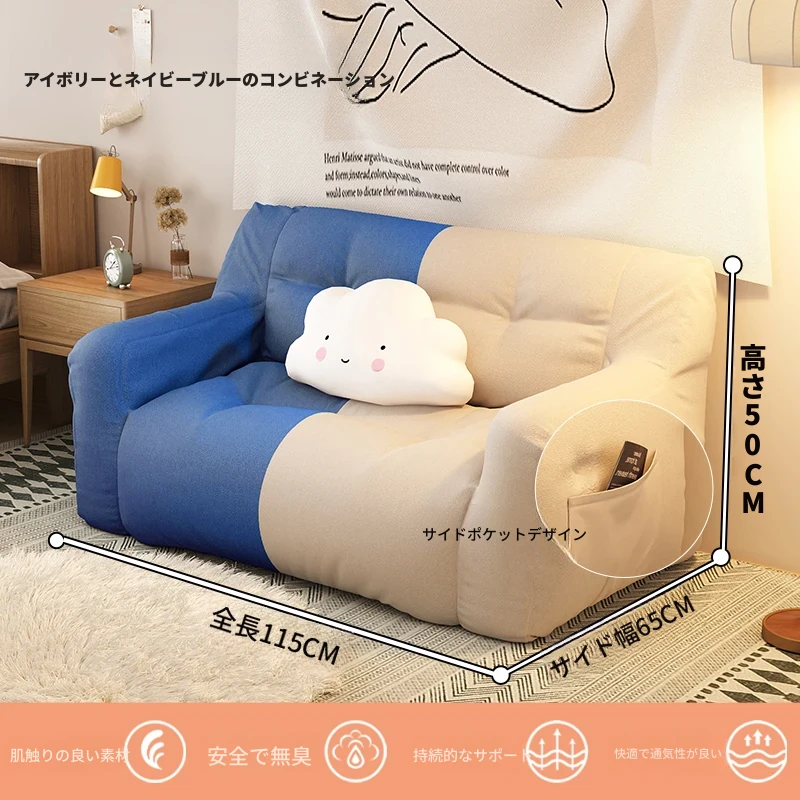 二人用-中サイズ❎米色と海の青【充填量増加 長時間座ってもへこまない】