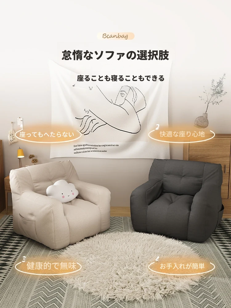【メイン画像人気商品】一人用⭐大サイズ--浅米色【充填量増加 長時間座ってもへこまない】