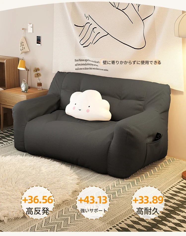 二人用-中サイズ❎深灰色【充填量増加 長時間座ってもへこまない】