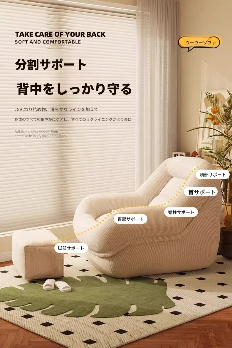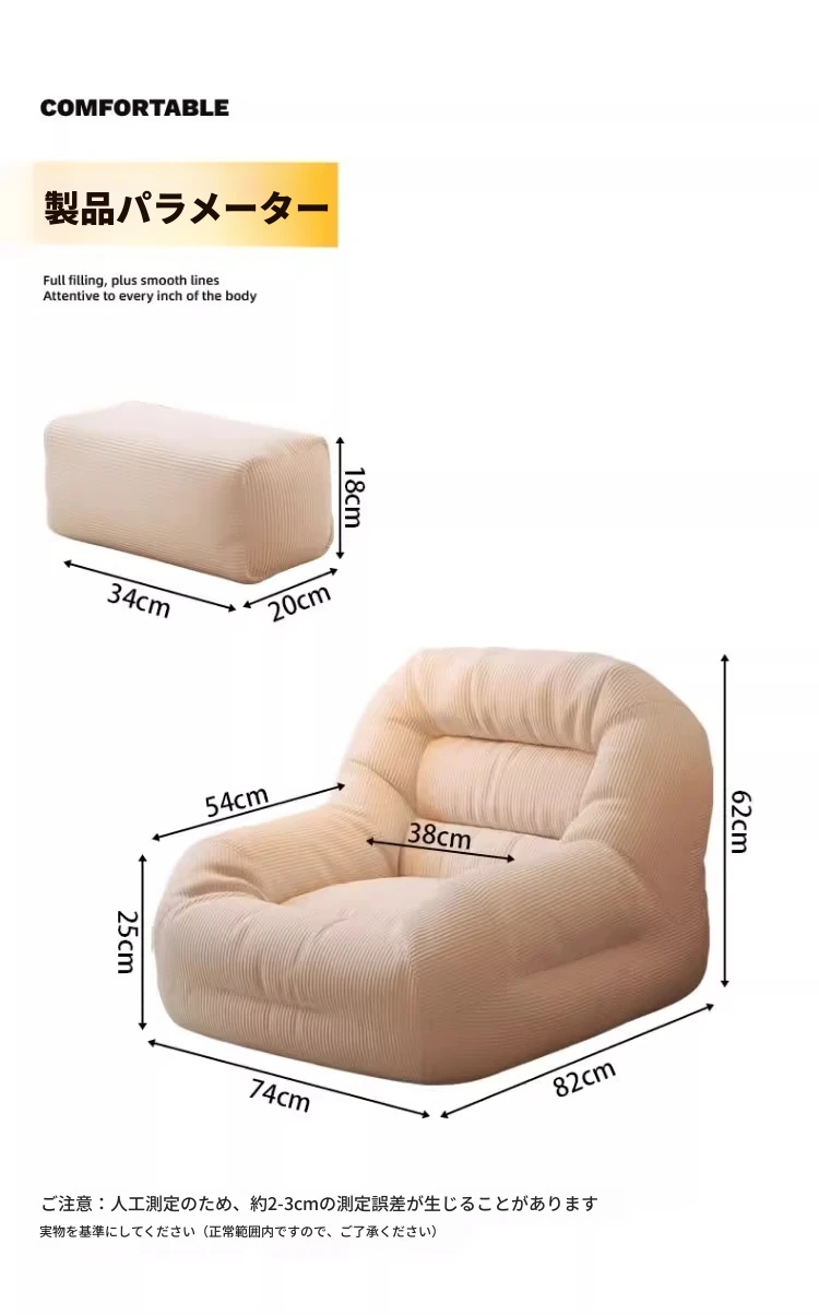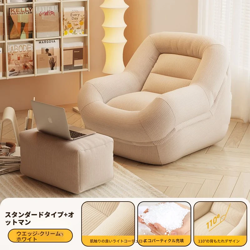 アップグレード厚手モデル★肌触りの良いコーデュロイ【クリームホワイト】環境に優しい粒状充填⭐フットレスト.