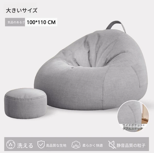 福利アイテム!【プレミアムビッグサイズ100*110 スカイグレー+フットレスト】肌触りの良いコットンリネン★独立した内袋は取り外し可能.