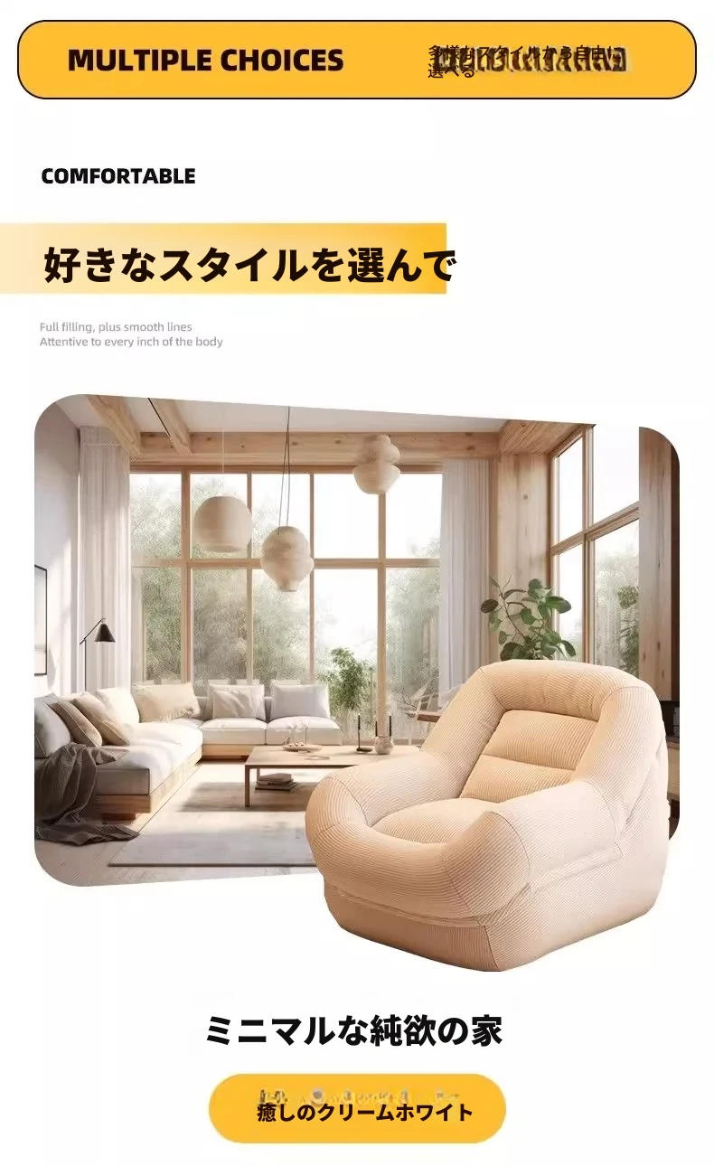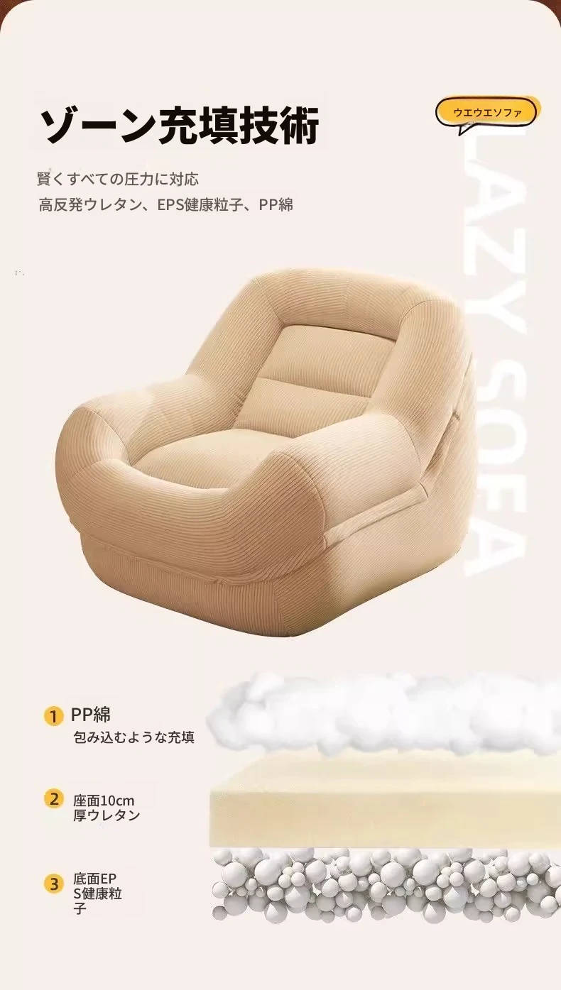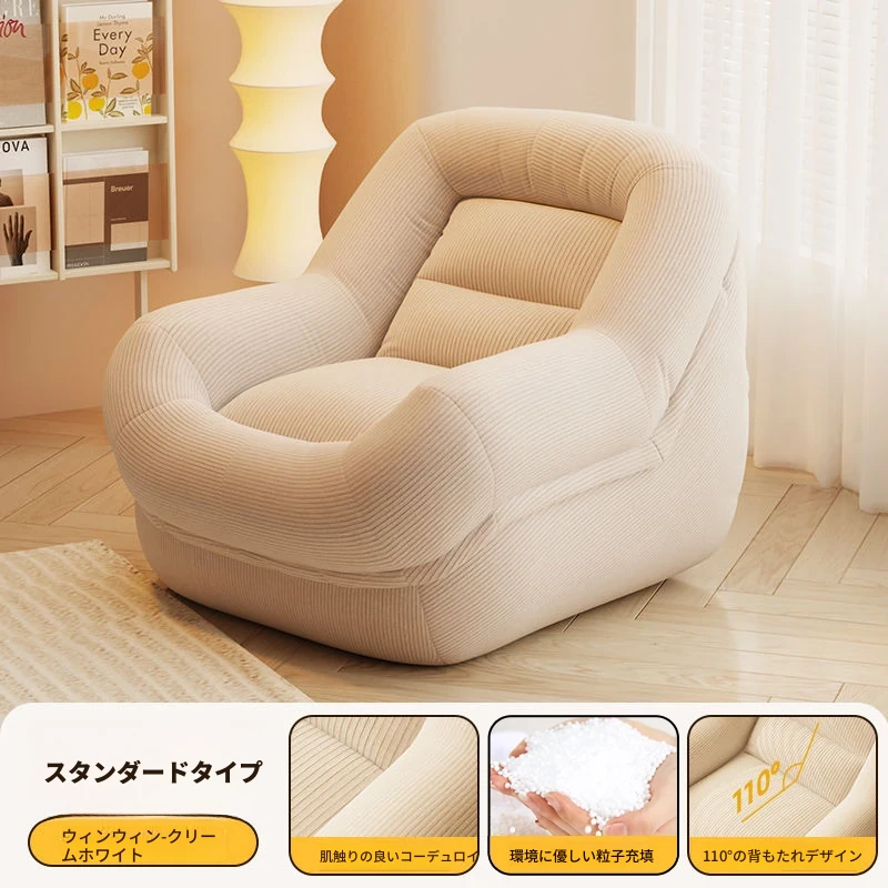 アップグレード厚手モデル★肌触りの良いコーデュロイ【クリームホワイト】環境に優しい粒状充填.