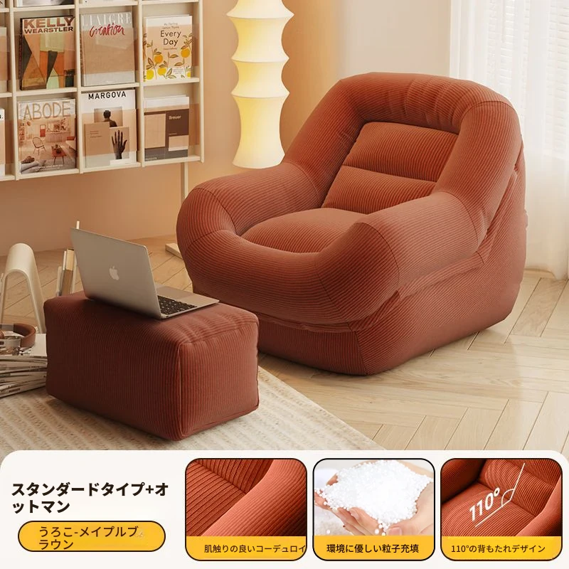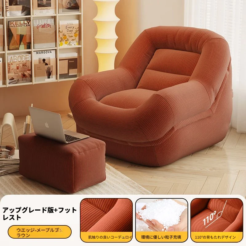 アップグレード厚手モデル★肌触りの良いコーデュロイ【メープルブラウン】環境に優しい粒状充填⭐フットレスト.