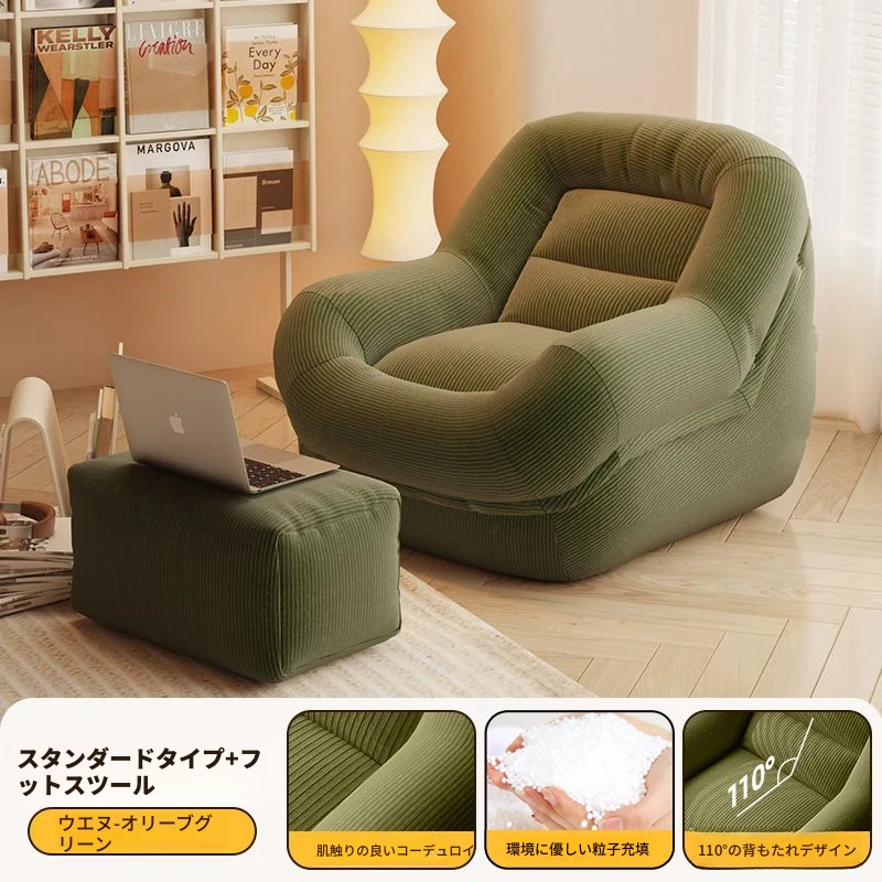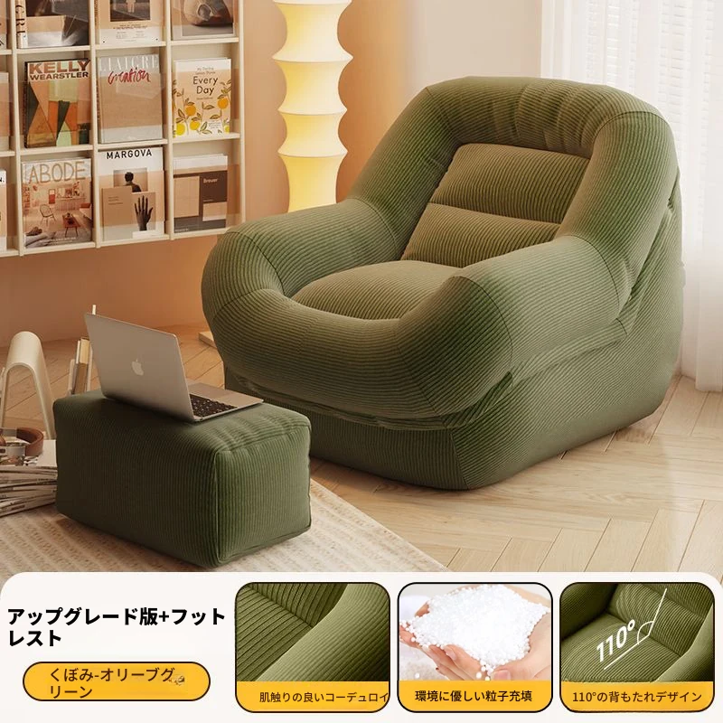 スタンダードモデル★肌触りの良いコーデュロイ【オリーブグリーン】環境に優しい粒状充填⭐フットレスト.